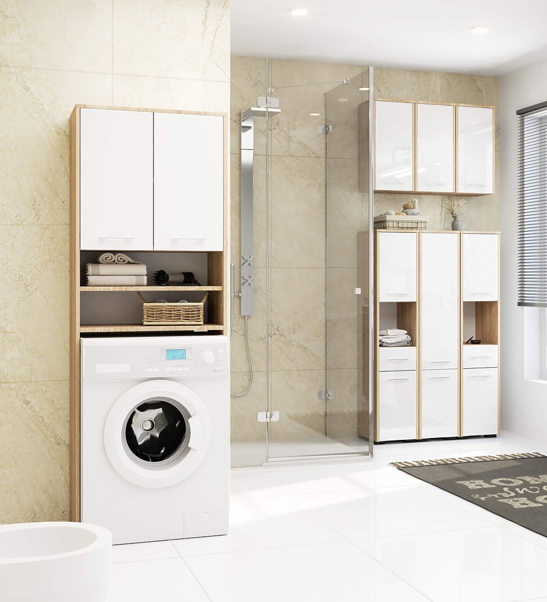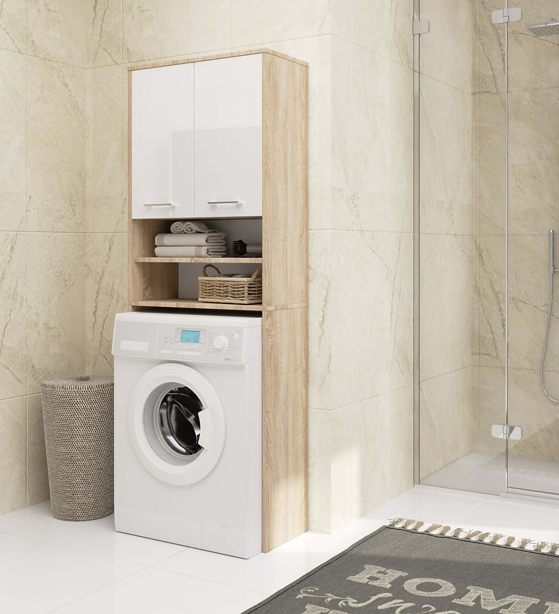 Lukafurniture.cz » Koupelna a WC / Koupelnové skříňky / KOUPELNA REGÁL FIN NAD PRAČKU DUB SONOMA / BÍLÝ LESK