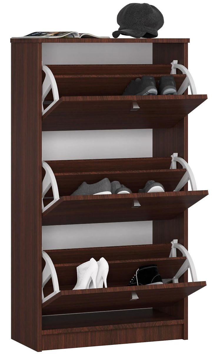 BOTNÍK 3 VÝKLOPNÉ DVÍŘKA Vyrobeno z laminované desky odolné proti oděru. Hrany opatřeny ABS hranou zajišťující odolnost proti poškození. Botník v barvě wenge Rozměry:Šířka - 60 cm Výška - 112,5 cm Hloubka - 28,5 cm- Botník vyroben z vysoce kvalitní laminované desky výrobce kronospan o tloušťce 16 mm odolné proti oděru