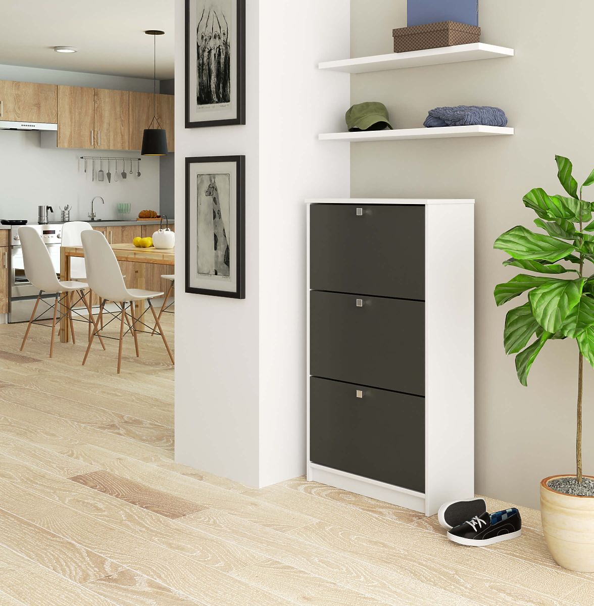 Botník 3 výklopné dveře 60 cm - bílá-grafitová šedá