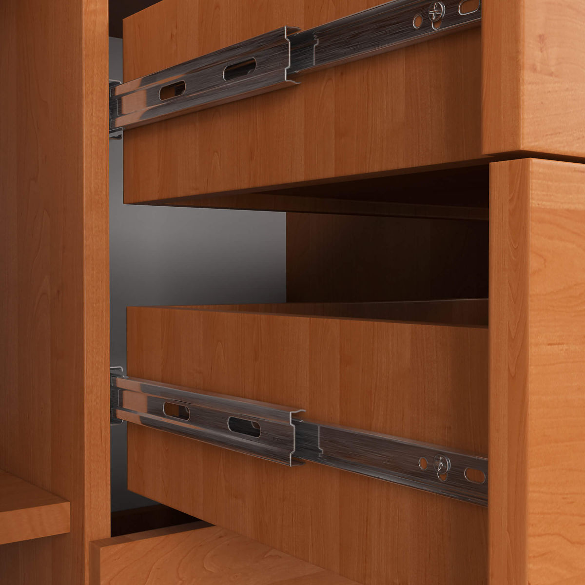 - Zásuvky se pohybují na kovových kuličkových pojezdech