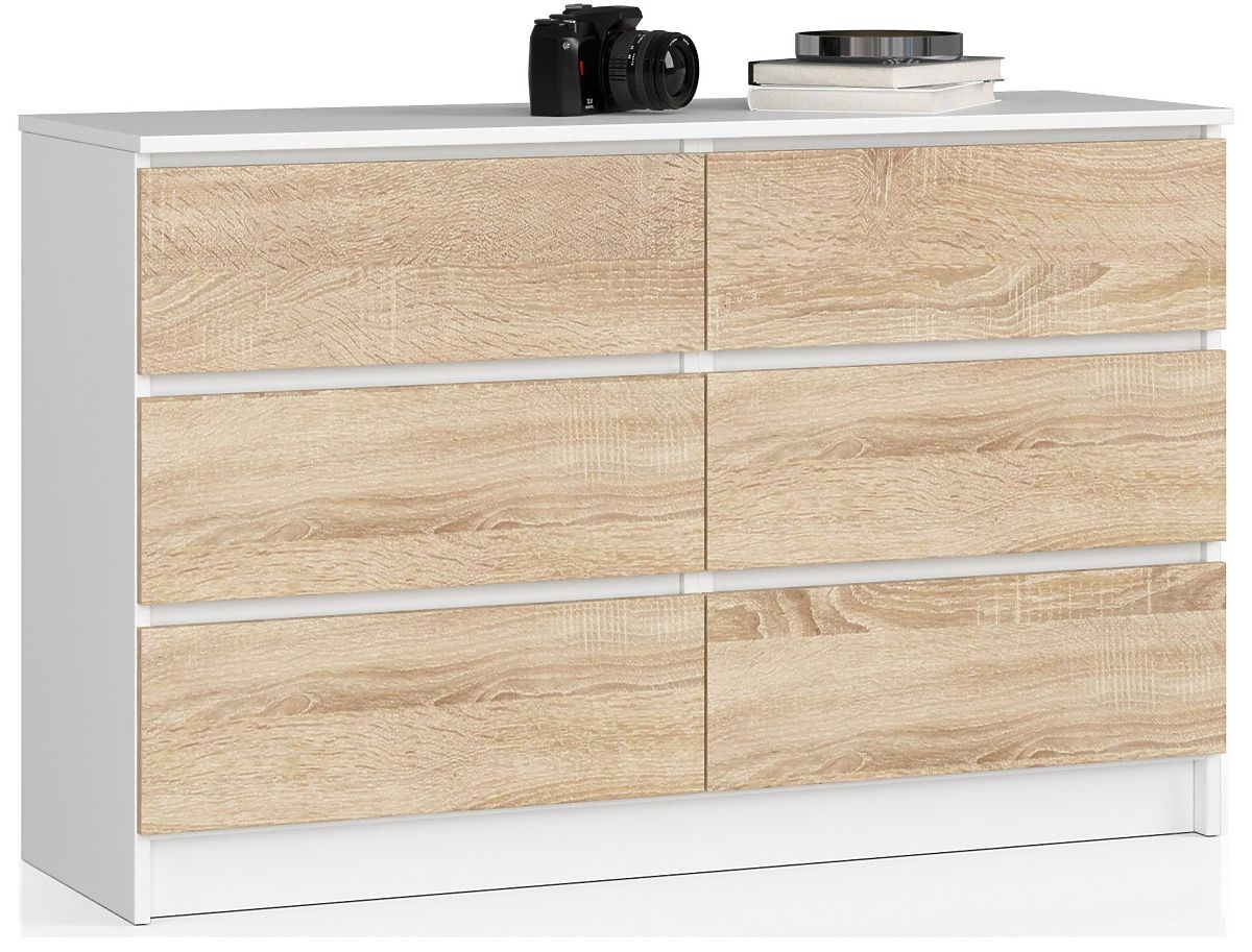 Komoda s šesti zásuvkami a bílým korpusem, čela v dekoru Dub Sonoma. .. více