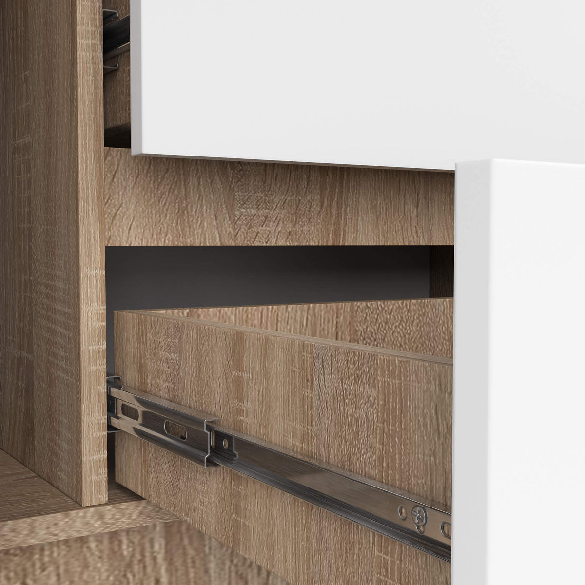 - Zásuvky se pohybují na kovových kuličkových pojezdech - Hrany olepené ABS hranou zajišťující vysokou ochranu proti poškození