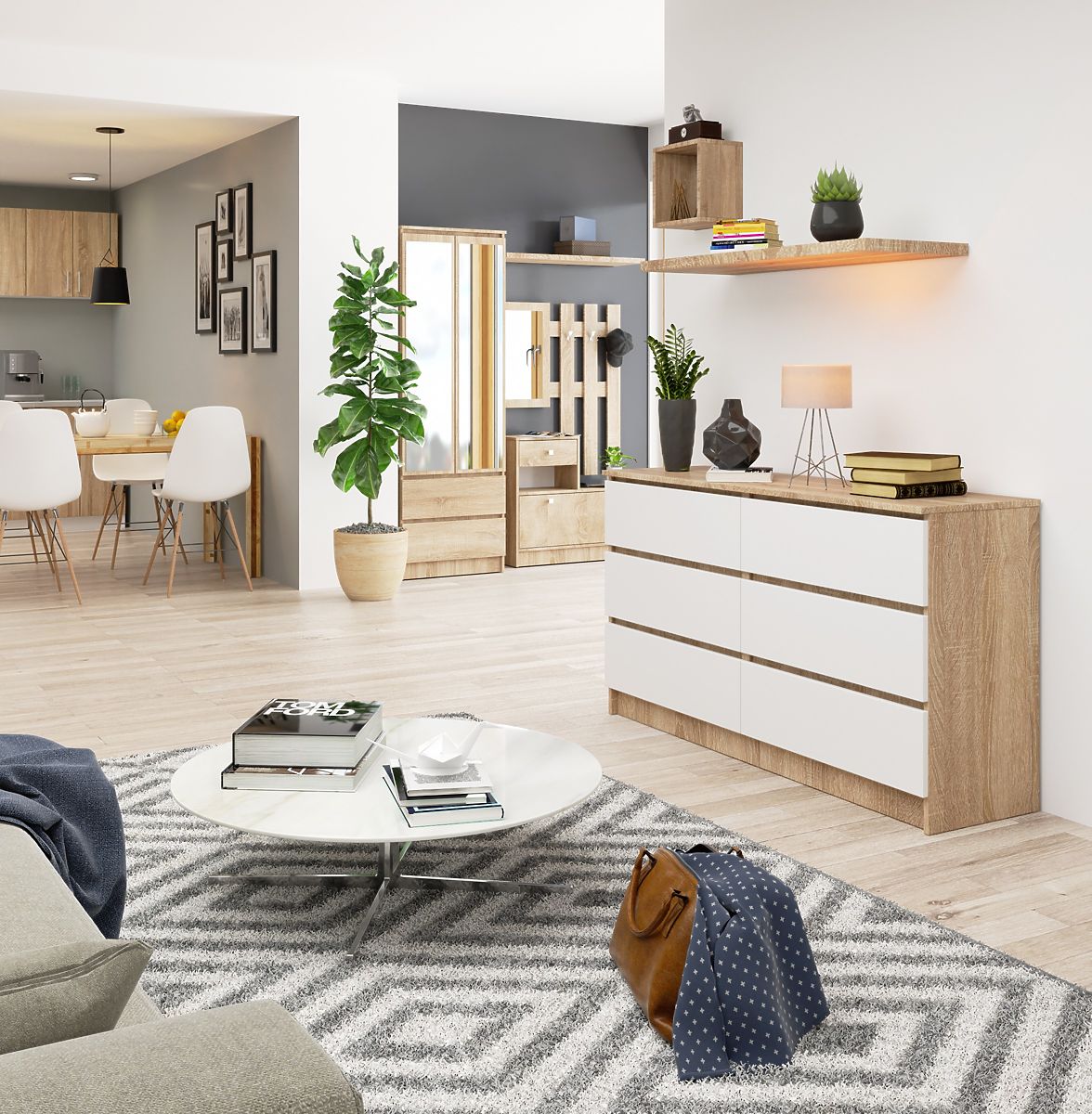 Velká komoda s šesti zásuvkami v barvách dub sonoma a bílá. .. více