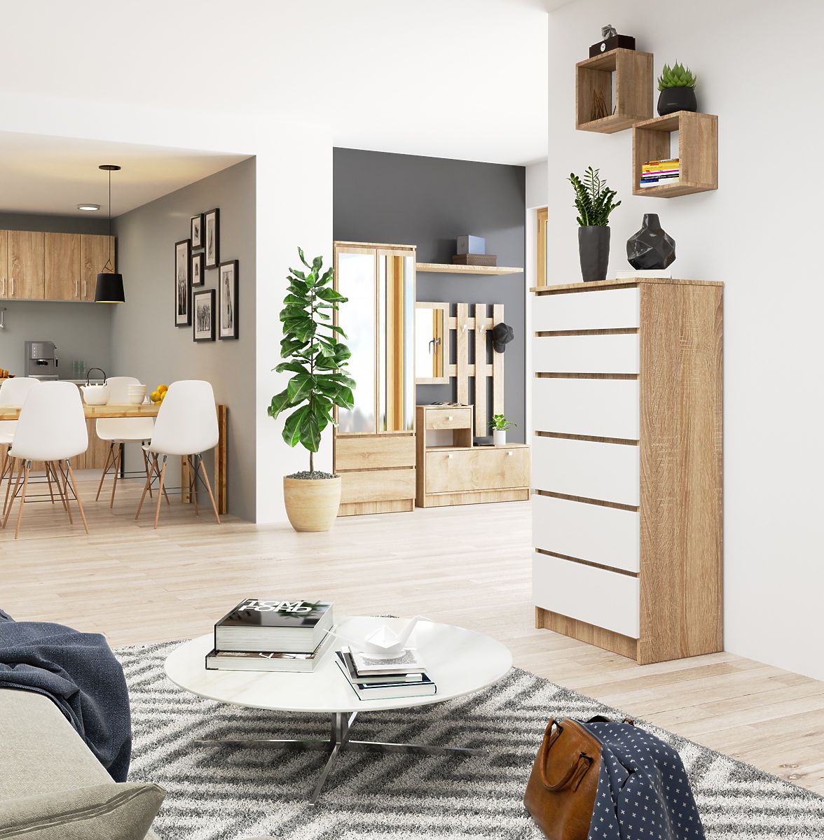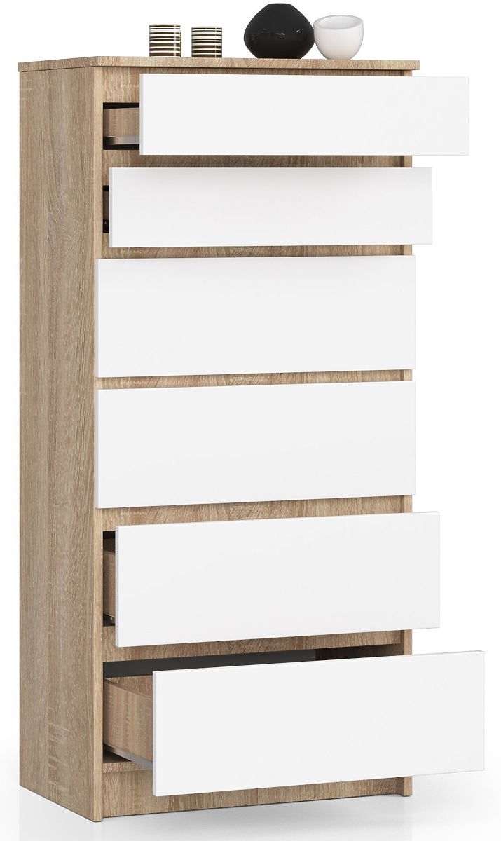 Komoda K60 s 6 zásuvkami v barvě dub sonoma a bílá. .. více