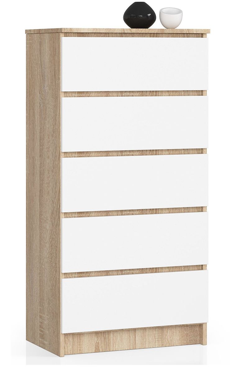 Komoda s pěti zásuvkami v kombinaci dubu Sonoma a bílého. .. více