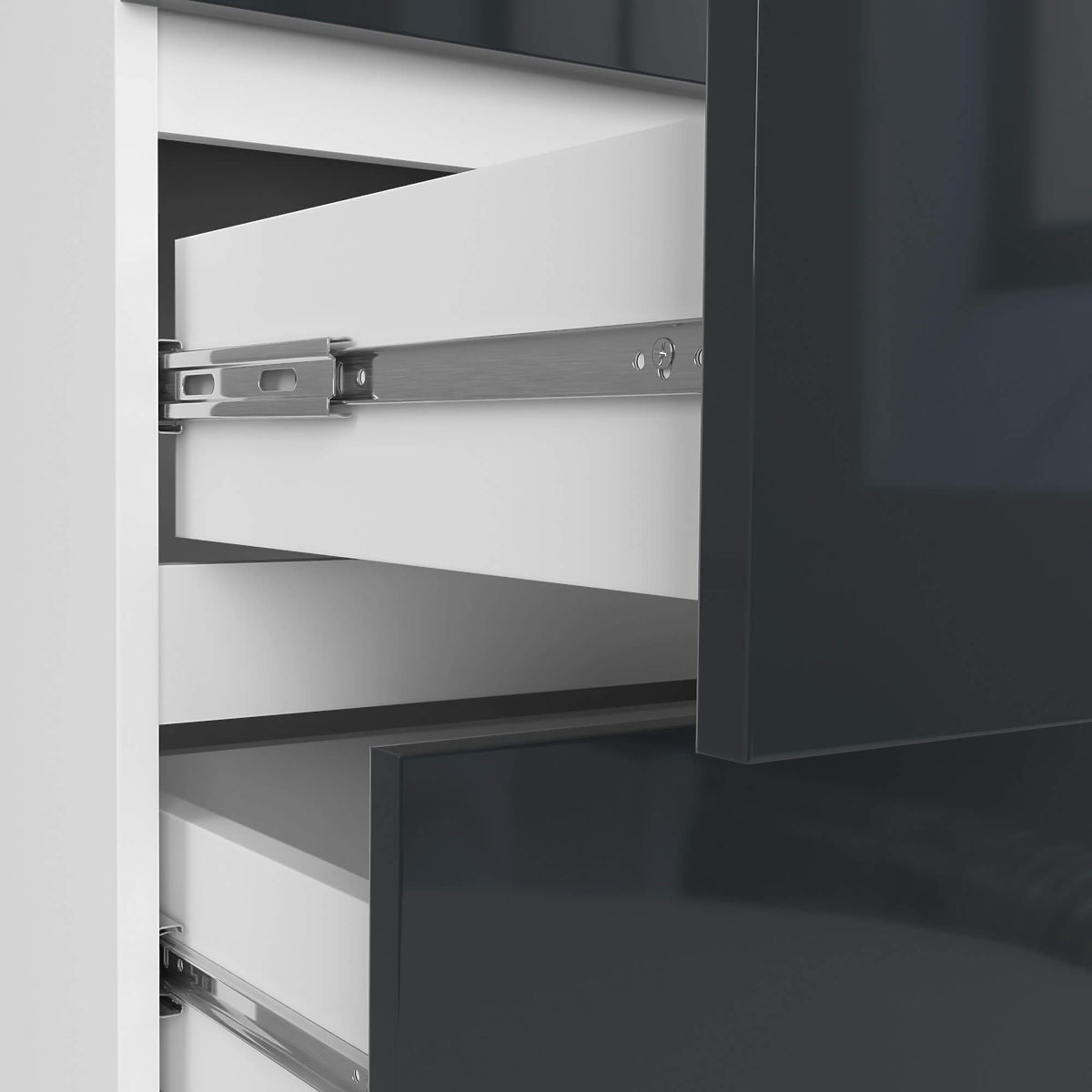 - Zásuvky se pohybují na kovových kuličkových pojezdech