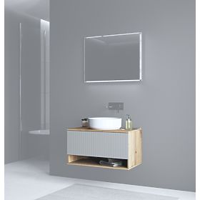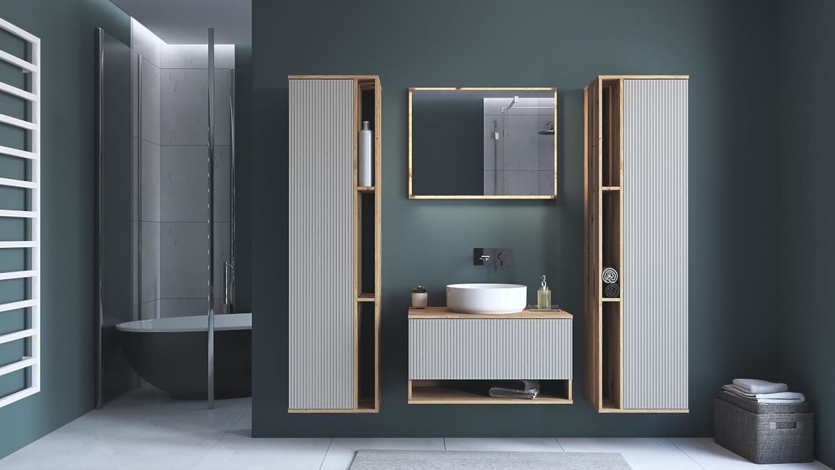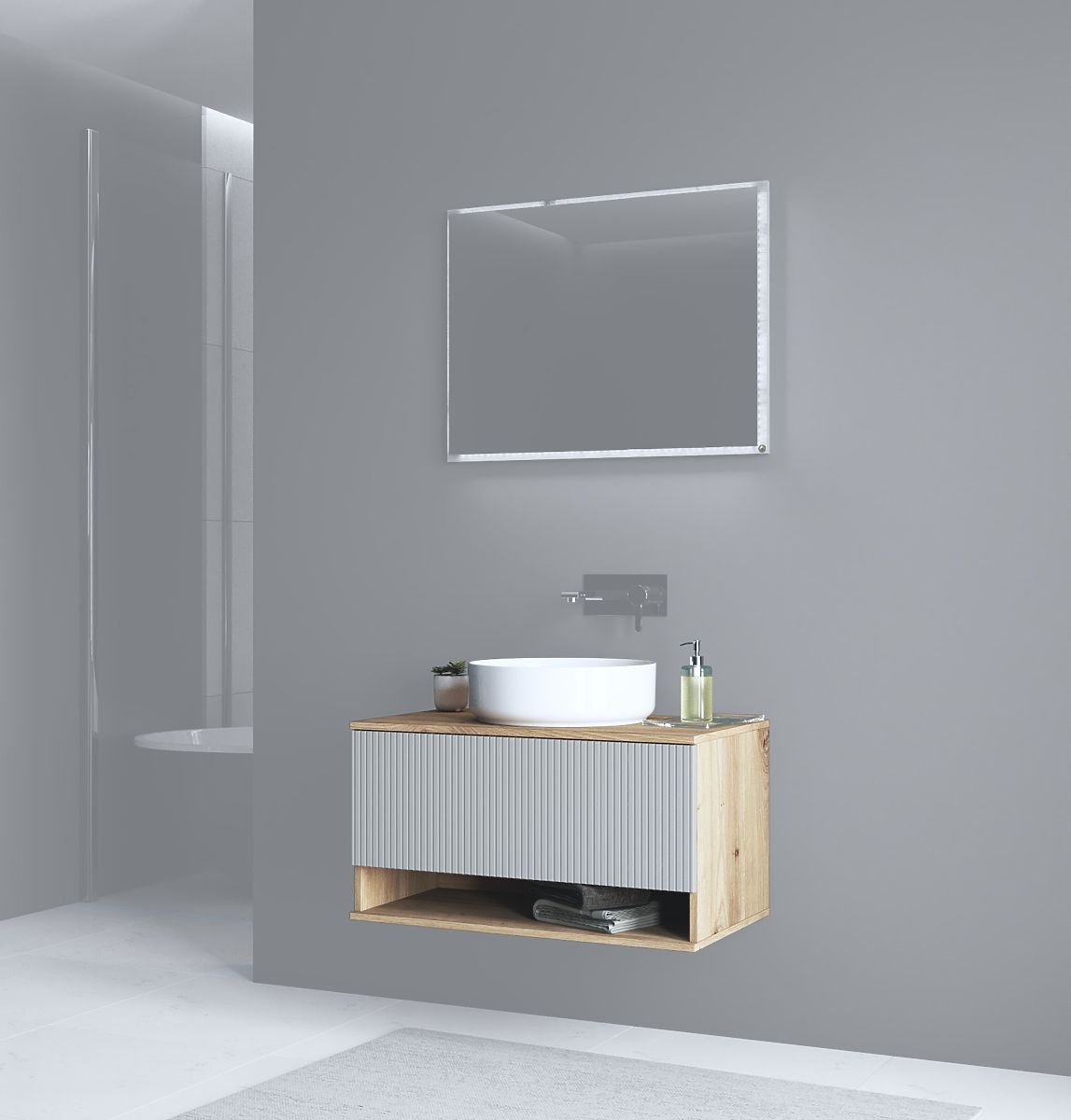 Koupelnová skříňka AVIOLA spojuje moderní design inspirovaný přírodou s praktickým využitím pro každodenní provoz koupelny. Kombinace dekoru dub artisan a matného kašmírového frontu vytváří harmonický celek, který působí útulně a zároveň elegantně.