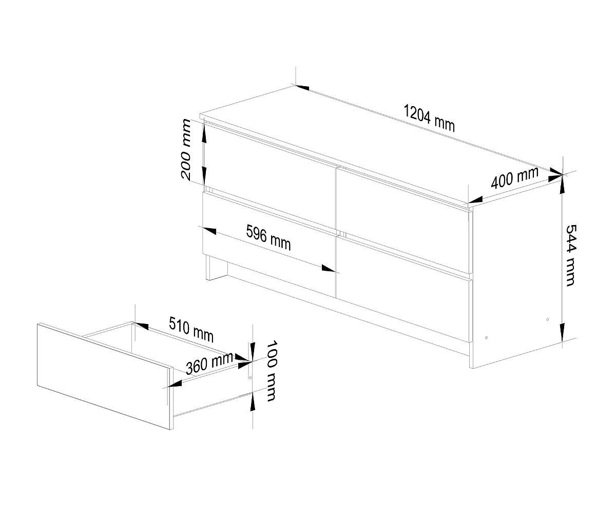 - Komoda vyrobena z laminované desky odolné proti oděru