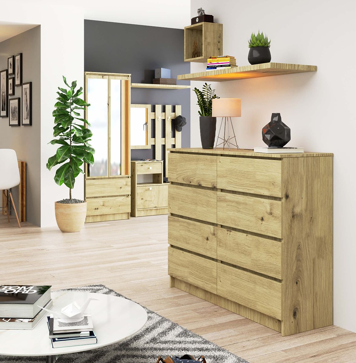 Komoda s osmi zásuvkami z laminované desky Dub Artisan. .. více