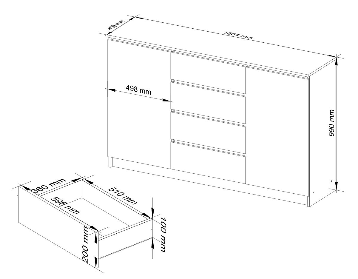 KOMODA K160 cm 2 DVEŘE 4 ZÁSUVKY