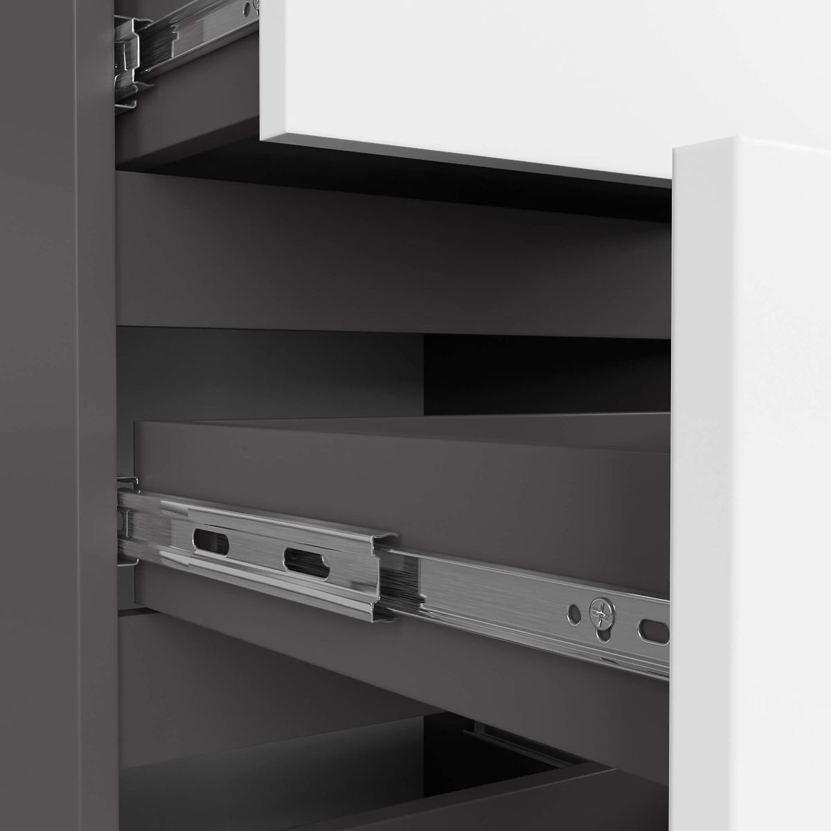 - komfort používání - zásuvky se lehce pohybují na kovových kuličkových pojezdech,