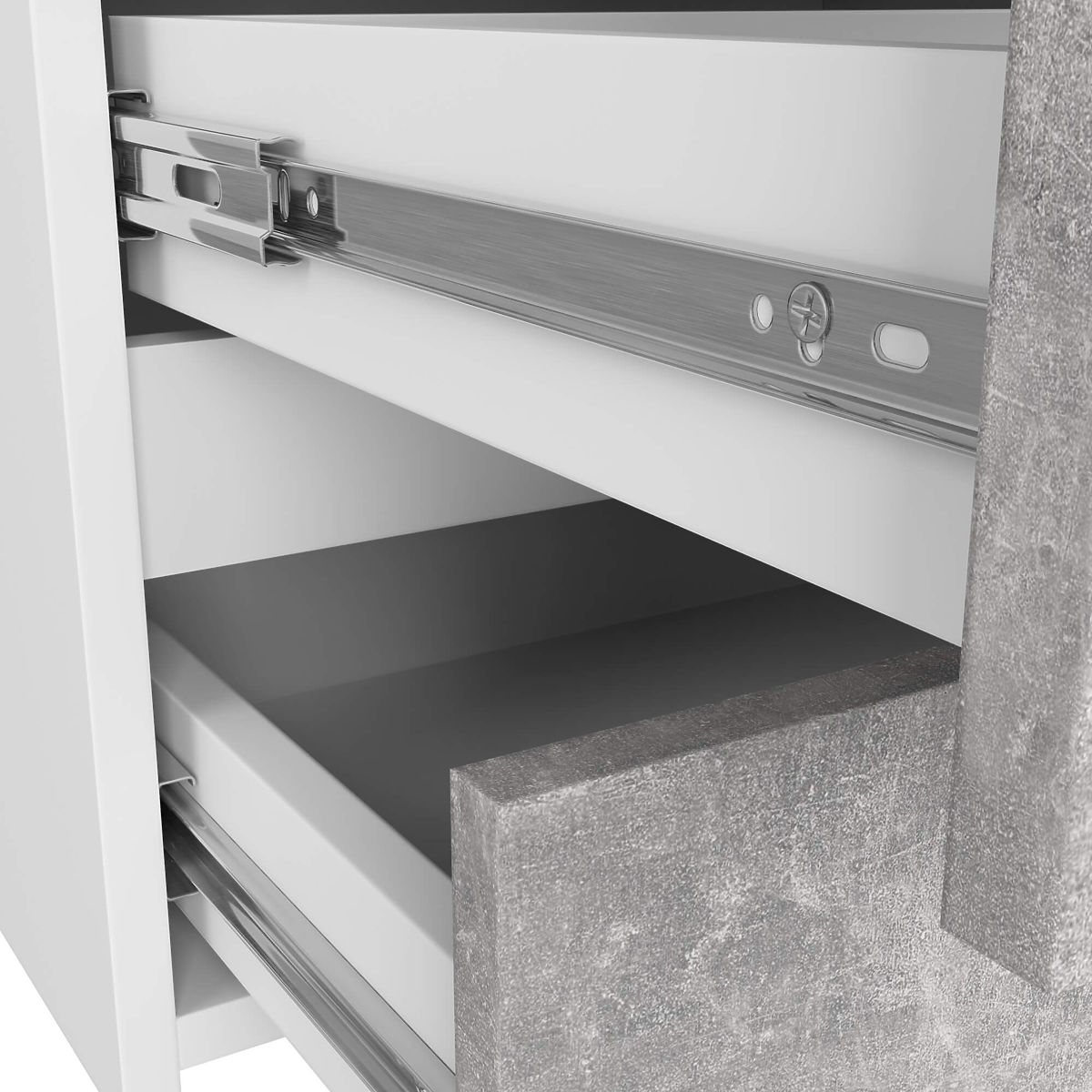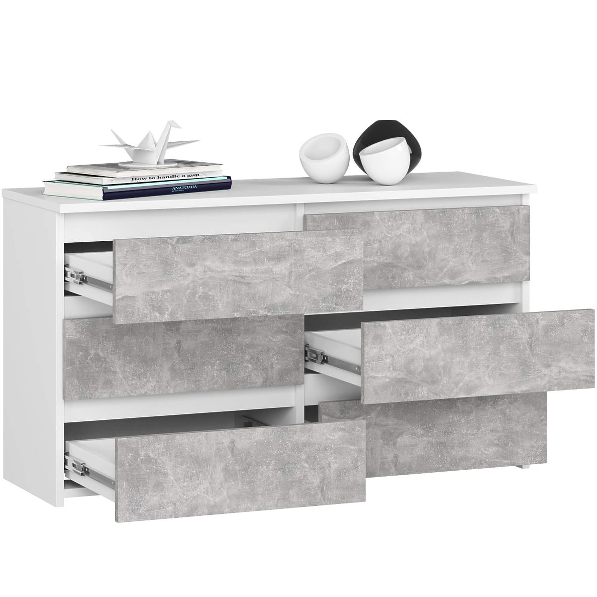 Prostorná bílá komoda s betonovými čely a šesti zásuvkami. .. více