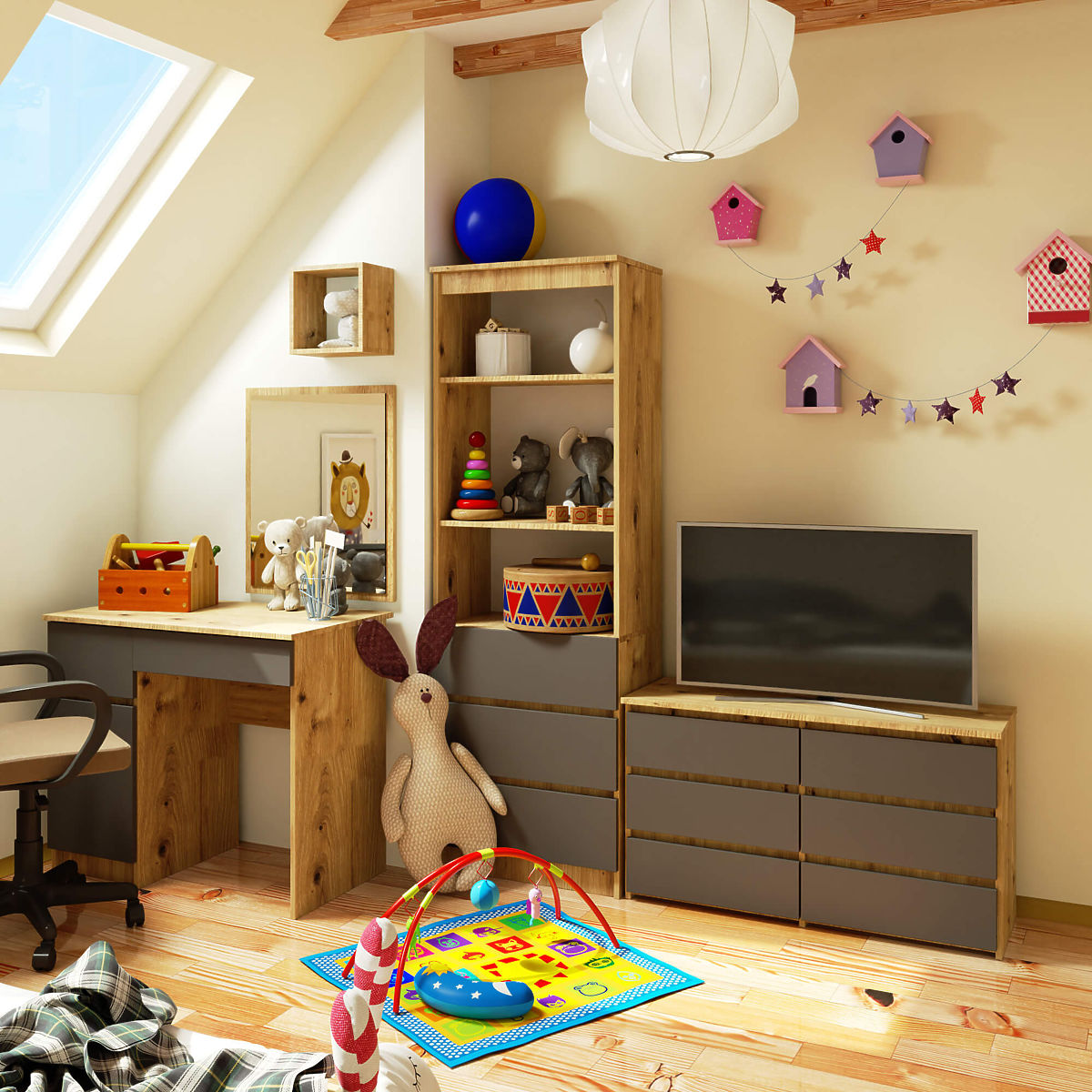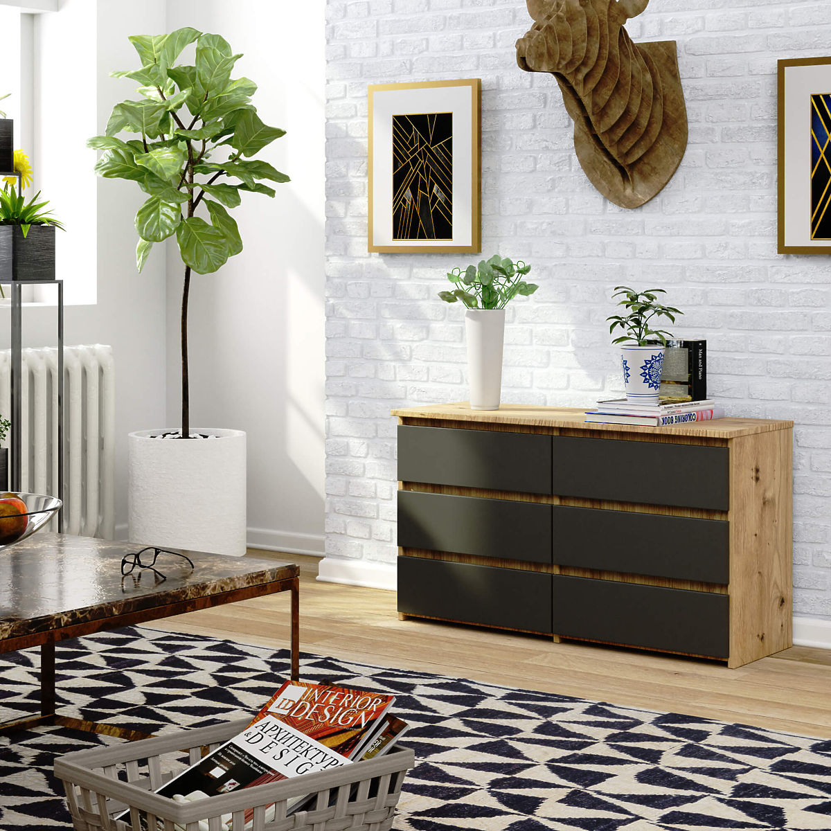 V nábytkářství se klade zvláštní důraz na funkčnost produktů a jejich vysoké estetické hodnoty. Skvělým příkladem je komoda CL 100 cm. Tento praktický kus nábytku je vyroben z laminované desky odolné proti oděru, což zaručuje jeho trvanlivost a pevnost. V šesti prostorných zásuvkách se vejdou různé knihy, dokumenty či drobnosti. Někteří z našich zákazníků se rozhodují pro ukládání oblečení nebo spodního prádla. Komoda dub artisan s šedými čely má elegantní design. Jednoduchá forma a elegantní provedení se hodí jak do klasických a elegantních interiérů, tak i do těch romantických. Tento výjimečný kus nábytku se perfektně prezentuje v elegantním obývacím pokoji i útulné ložnici. Bývá také využíván jako součást šatníku nebo předsíně. Komoda 6 zásuvek je oceňována jak individuálními zákazníky, tak podnikateli. Díky bezvadnému vzhledu a neobyčejné kapacitě se skvěle hodí jako součást vybavení kanceláří.