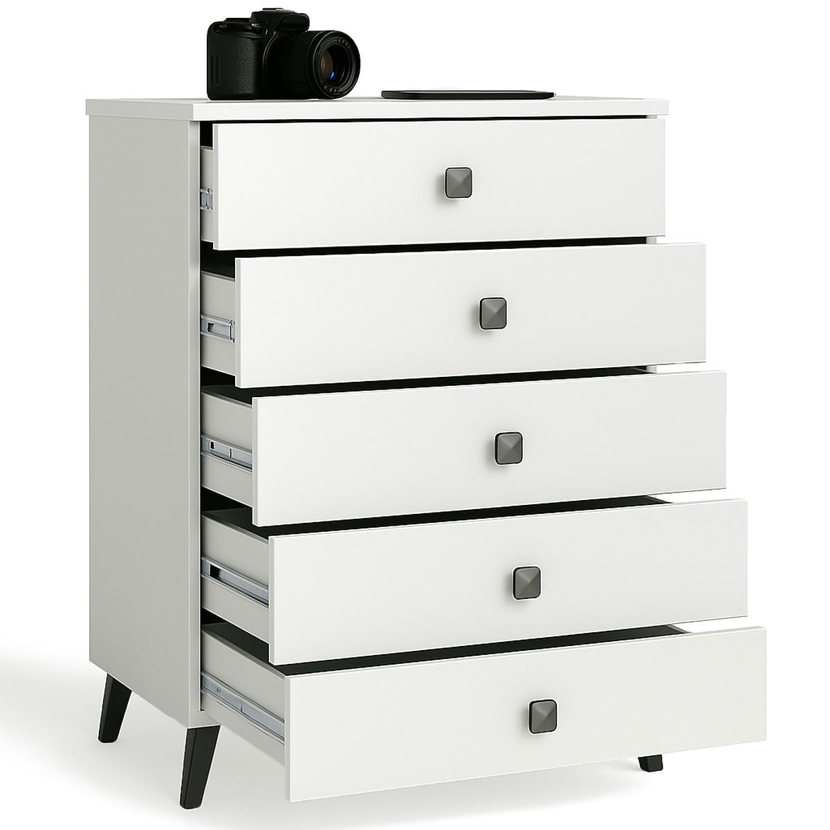 KOMODA MOBI 5 ZÁSUVEK BÍLÁ ČERNÁ