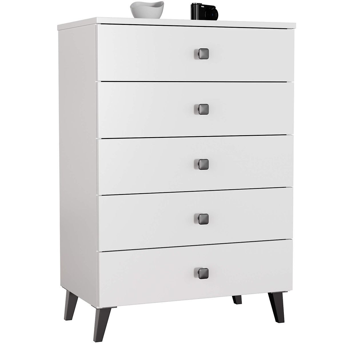 Kompaktní komoda MOBI s pěti zásuvkami v bílé a černé barvě. .. více