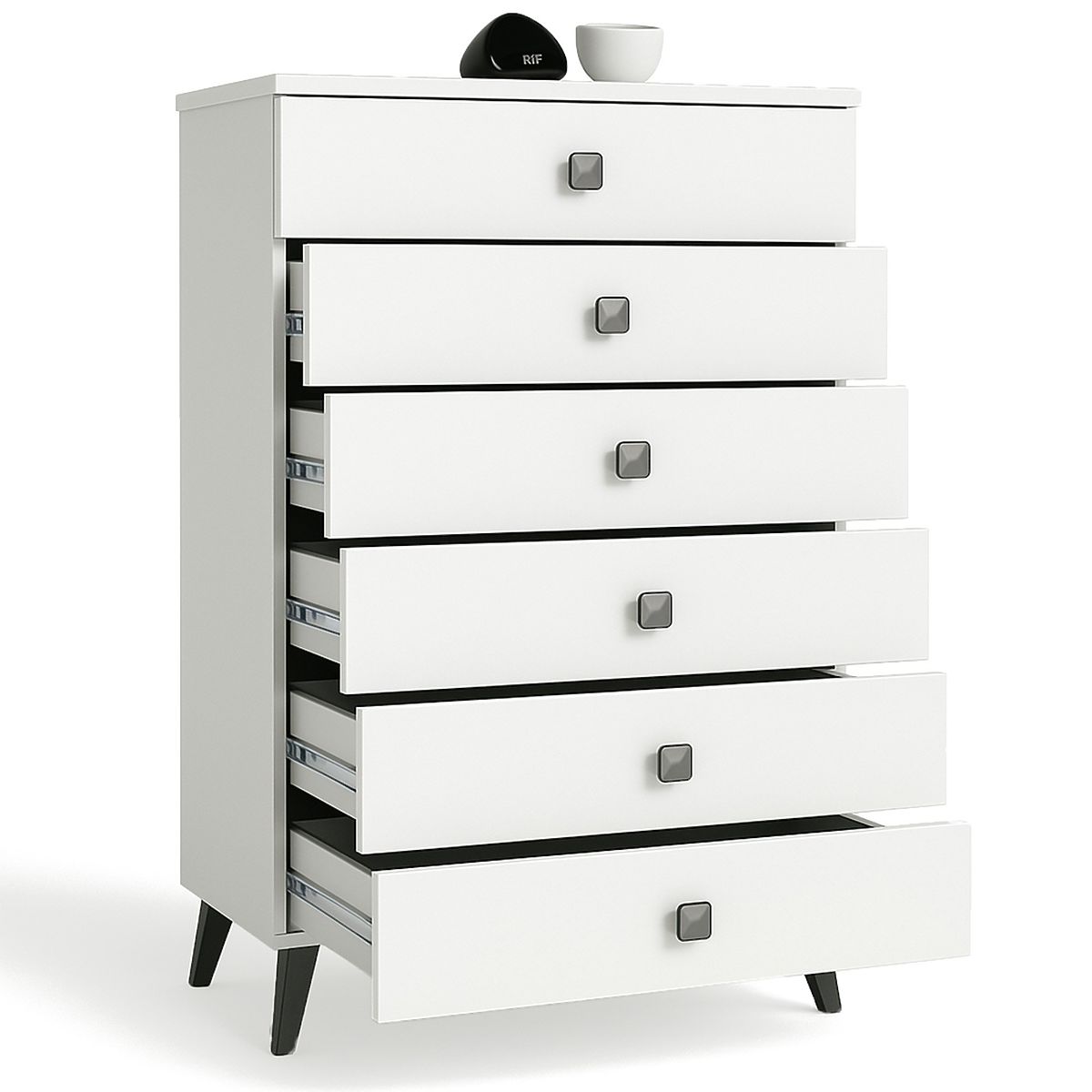 KOMODA MOBI 6 ZÁSUVKOVÁ BÍLÁ ČERNÁ