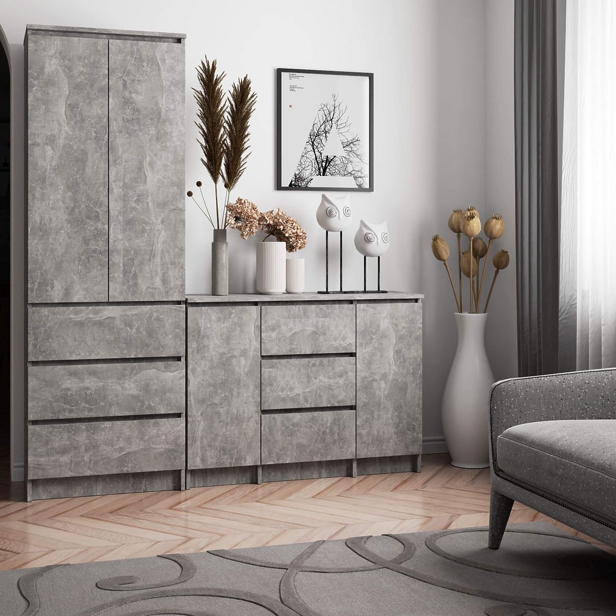 Hloubka - 35cm- Komoda vyrobena z laminované desky odolné proti oděru