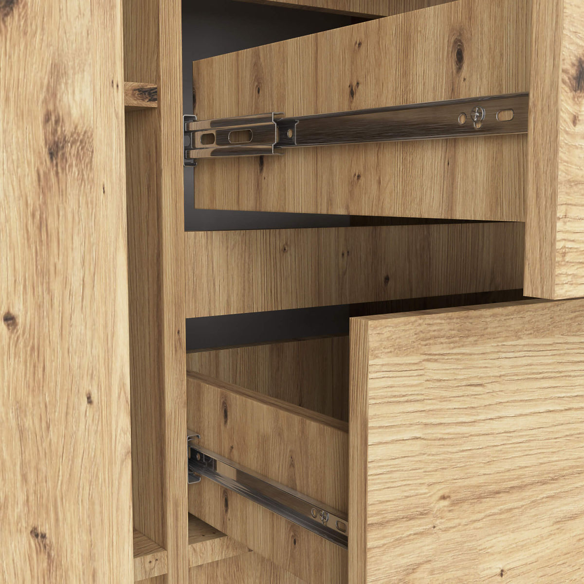 - Zásuvky se pohybují na kovových kuličkových pojezdech