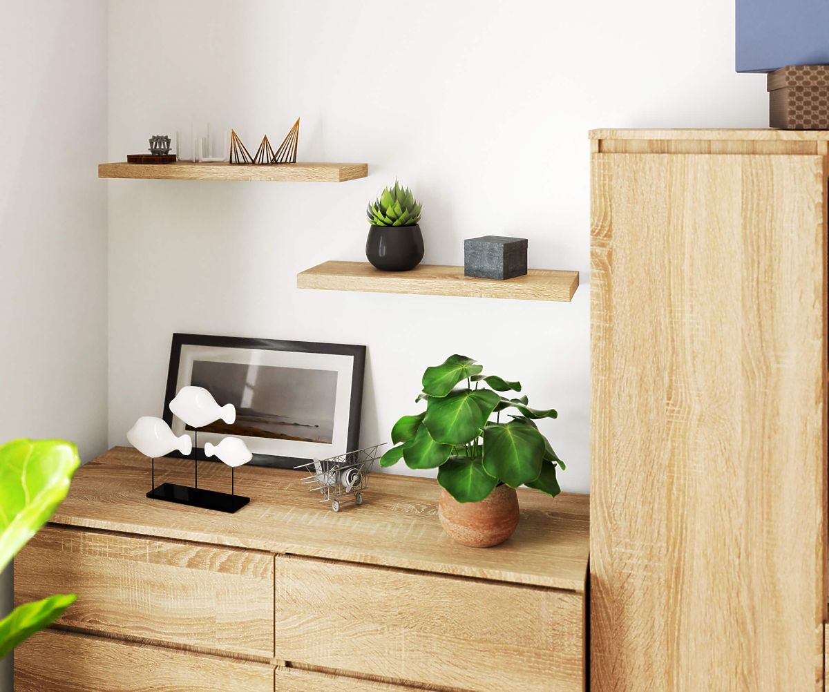 Nábytková police 60 cm Vyrobeno z laminované desky odolné proti oděru. Hrany jsou pokryty melaminem. Součástí balení jsou neviditelné nástěnné držáky.