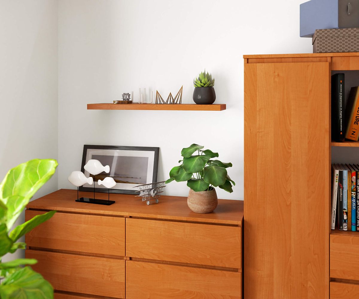 Nástěnná police z laminované desky v barvě olše. .. více