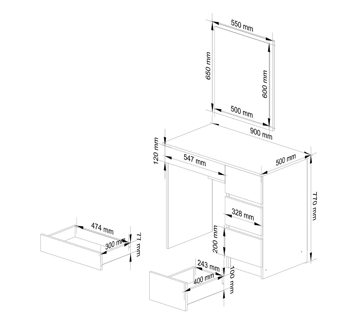 Toaletní stolek je stůl A-6 a další zásuvka spolu s panelem zrcadla.