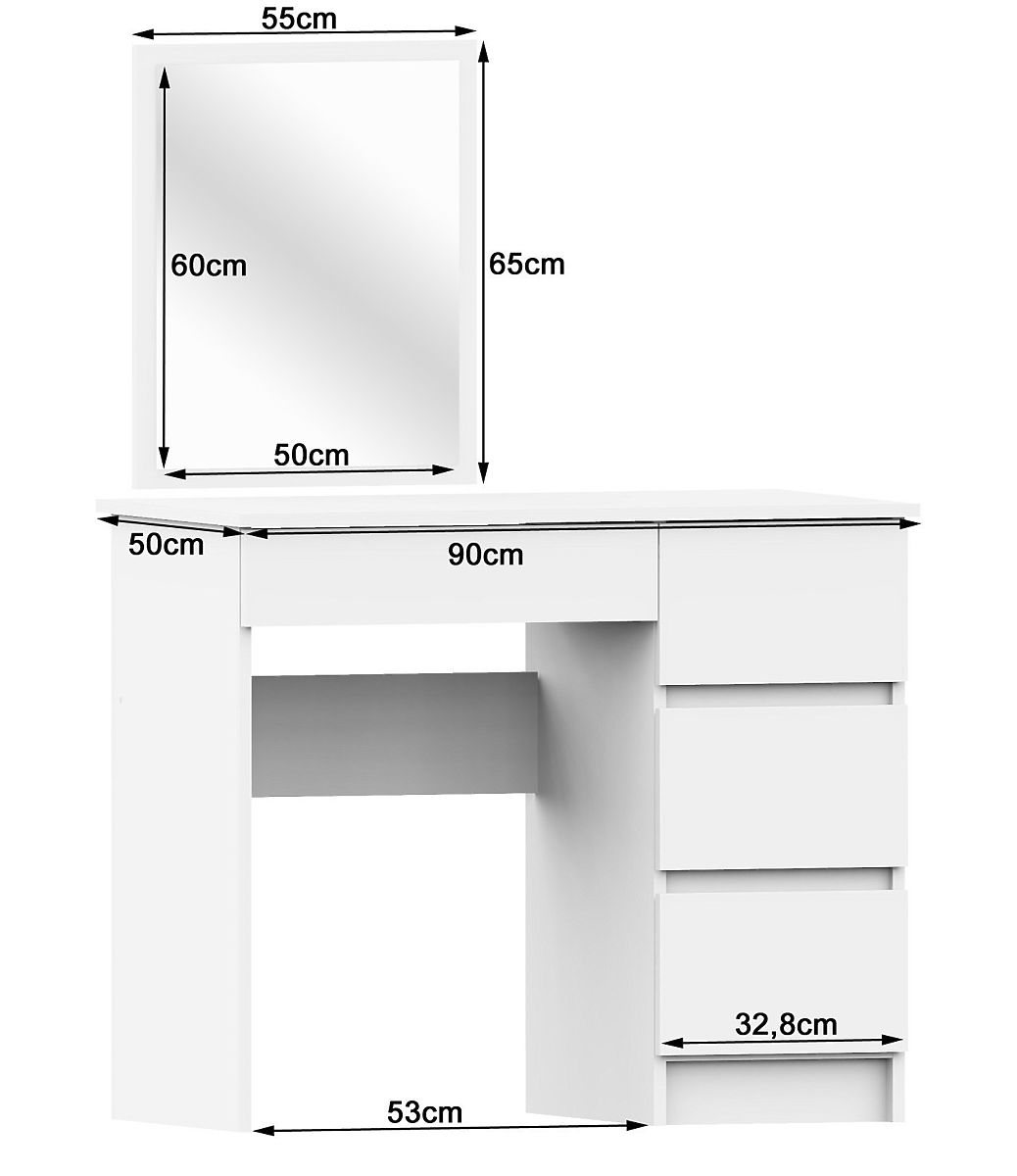 Lukafurniture.cz » Nábytek / Toaletní stolky / KOSMETICKÝ TOALETNÍ STOLEK S ZRCADLEM T-6/SL 500x600 PRAVÝ BÍLÝ