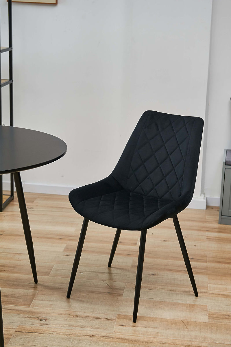 Prošívaná židle SJ.0488 s černými kovovými nohami a velurovým čalouněním. .. více
