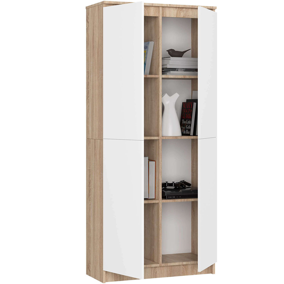 Uzavřený regál s 2 dveřmi a 8 policemi v barvě dub sonoma a bílá. .. více