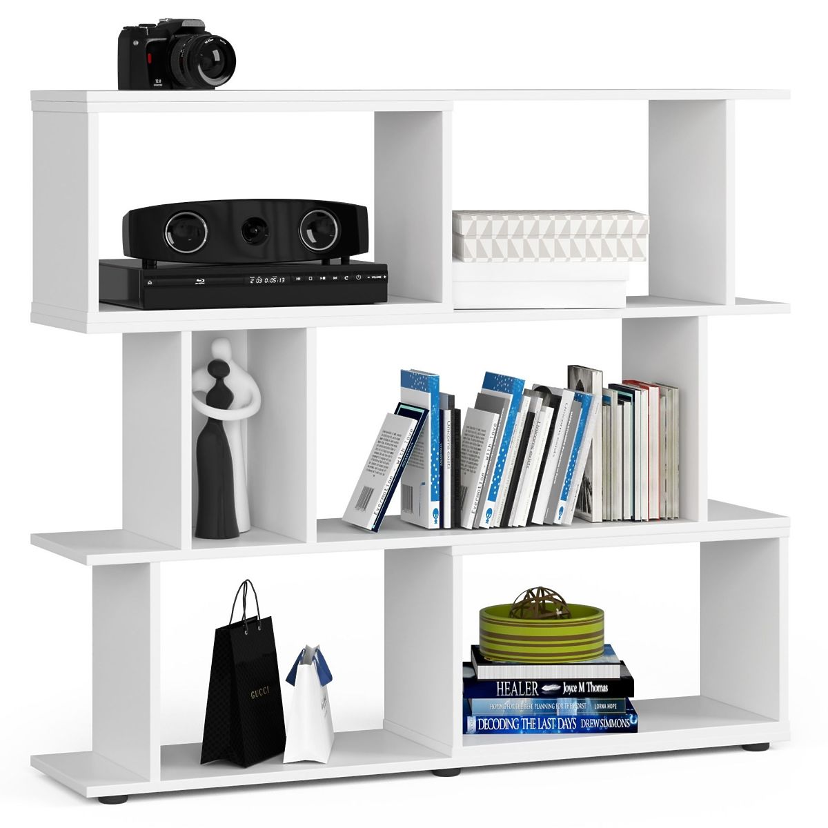 - elegantní vzhled: regál se vyznačuje jednoduchou formou, je ve stylové bílé barvě,