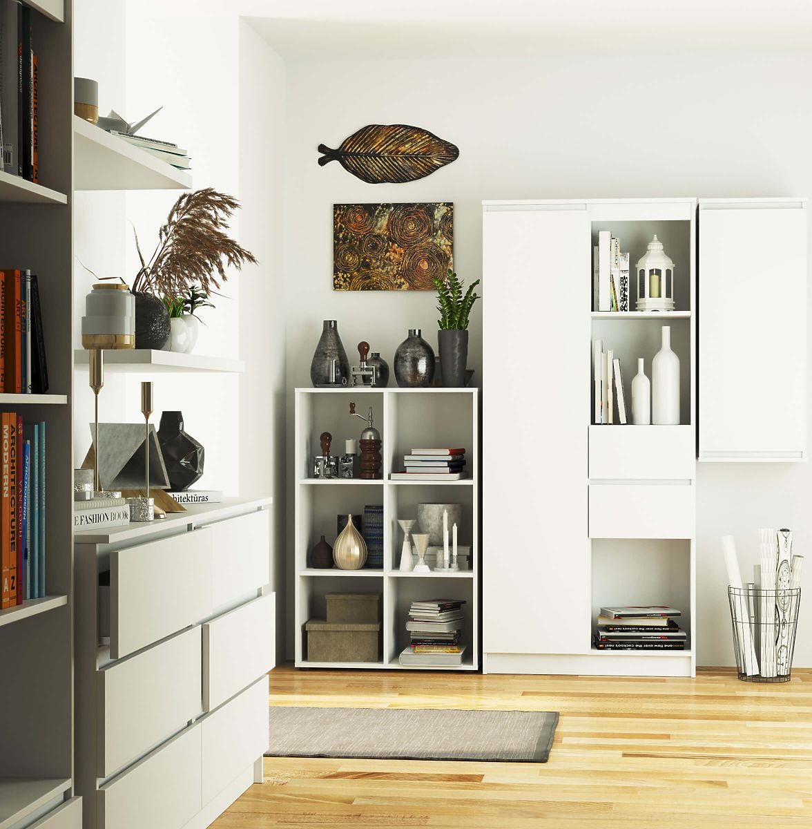 - elegantní vzhled: regál se vyznačuje jednoduchou formou, je ve stylové bílé barvě,