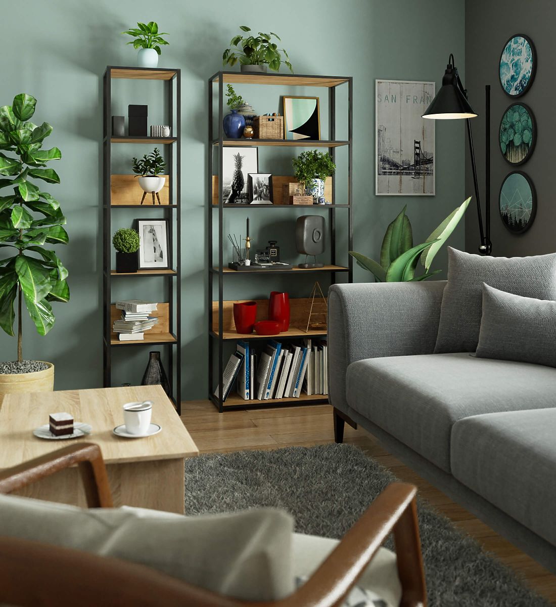 - elegantní vzhled: regál se vyznačuje jednoduchou formou, rám je černý, zatímco deska je v barvě dub craft,