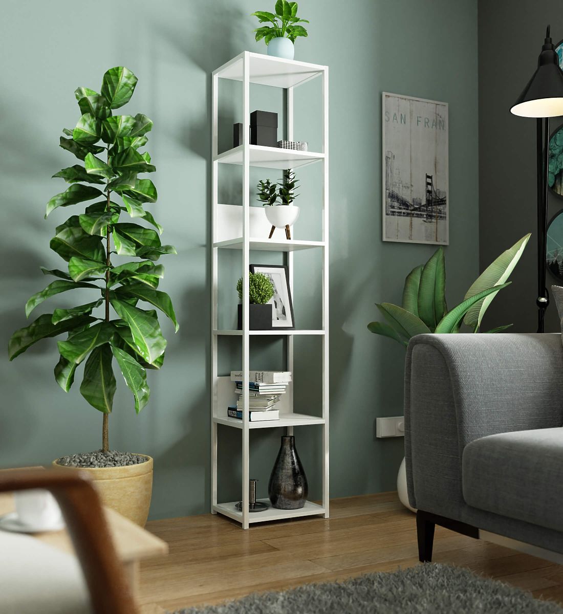 Kovový loftový regál je praktický a moderní nábytek, který se hodí jak do obývacího pokoje, tak do kanceláře. Regál s kovovým bílým rámem a 6 policemi v bílé barvě. Police regálu jsou vyrobeny z laminované desky o tloušťce 16 mm. Je to trvanlivý a odolný materiál, který se vyznačuje vysokou odolností proti oděru. Hrany jsou dodatečně chráněny ABS hranou, díky čemuž bude nábytek stále vypadat dobře, i při velmi intenzivním každodenním používání. Regál je vybaven 6 policemi, na které lze umístit předměty, které chceme vystavit nebo mít po ruce. Celkově působí velmi stylově a moderně.