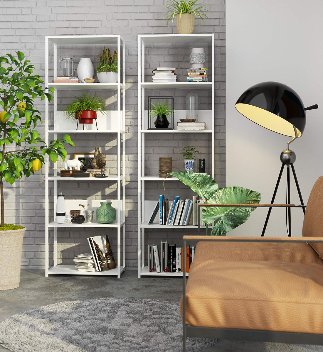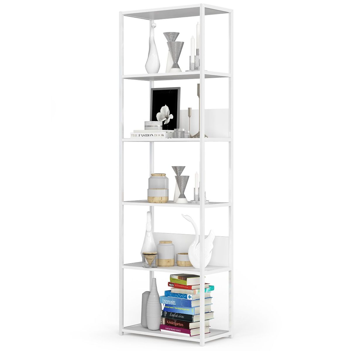 Kovový loftový regál je praktický a moderní nábytek, který se hodí jak do obývacího pokoje, tak do kanceláře. Regál s bílým kovovým rámem a 6 policemi v bílé barvě. Police regálu jsou vyrobeny z laminované desky o tloušťce 16 mm. Je to trvanlivý a odolný materiál, který se vyznačuje vysokou odolností proti oděru. Hrany jsou navíc chráněny ABS hranou, díky čemuž bude nábytek stále dobře vypadat, i při velmi intenzivním každodenním používání. Regál je vybaven 6 policemi, na které lze umístit předměty, které chceme vystavit nebo mít po ruce. Celkově působí velmi stylově a moderně.