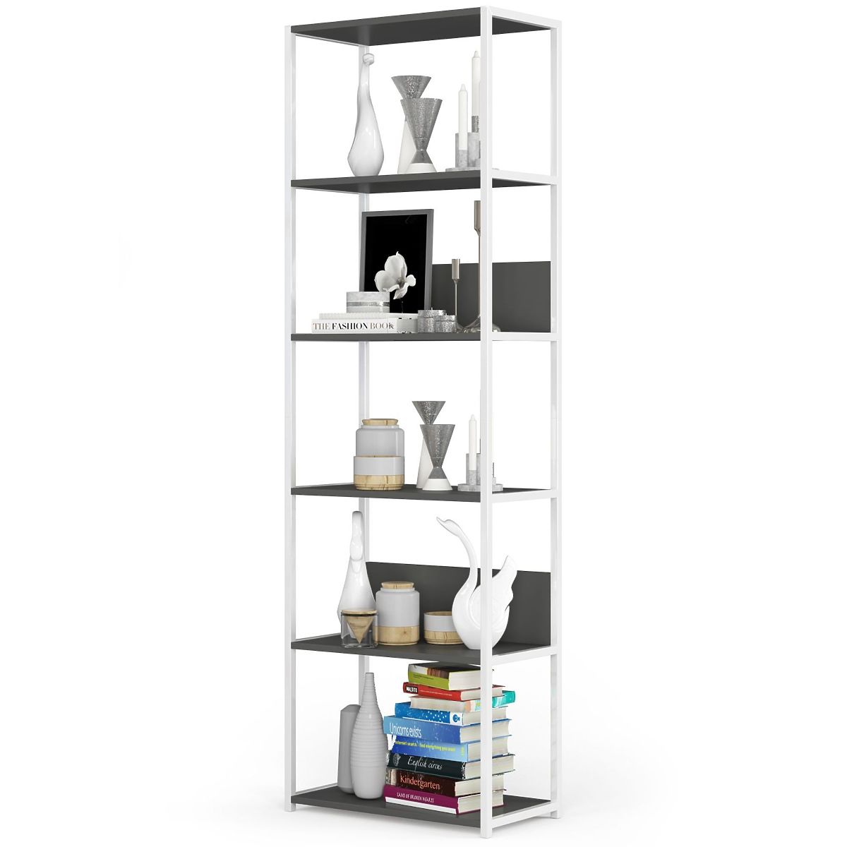 Kovový loftový regál je praktický a moderní nábytek, který se hodí jak do obývacího pokoje, tak do kanceláře. Regál s bílým kovovým rámem a 6 policemi v šedé barvě. Police regálu jsou vyrobeny z laminované desky o tloušťce 16 mm. Je to trvanlivý a pevný materiál, který se vyznačuje vysokou odolností proti oděru. Hrany jsou dodatečně chráněny ABS hranou, díky čemuž bude nábytek stále vypadat dobře, i při velmi intenzivním každodenním používání. Regál je vybaven 6 policemi, na které můžete umístit předměty, které chcete vystavit nebo mít jednoduše po ruce. Celkově působí velmi stylově a moderně.