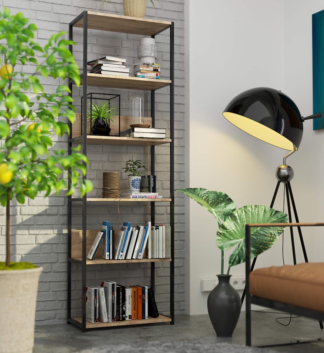 Kovový loftový regál je praktický a moderní nábytek, který se hodí jak do obývacího pokoje, tak do kanceláře. Regál s černým kovovým rámem a 6 policemi v barvě dub sonoma. Police regálu jsou vyrobeny z laminované desky o tloušťce 16 mm. Je to trvanlivý a odolný materiál, který se vyznačuje vysokou odolností proti oděru. Hrany jsou dodatečně chráněny ABS hranou, díky čemuž bude nábytek stále vypadat dobře, i při velmi intenzivním každodenním používání. Regál je vybaven 6 policemi, na které lze umístit předměty, které chceme vystavit nebo mít jednoduše po ruce. Celkově působí velmi stylově a moderně.