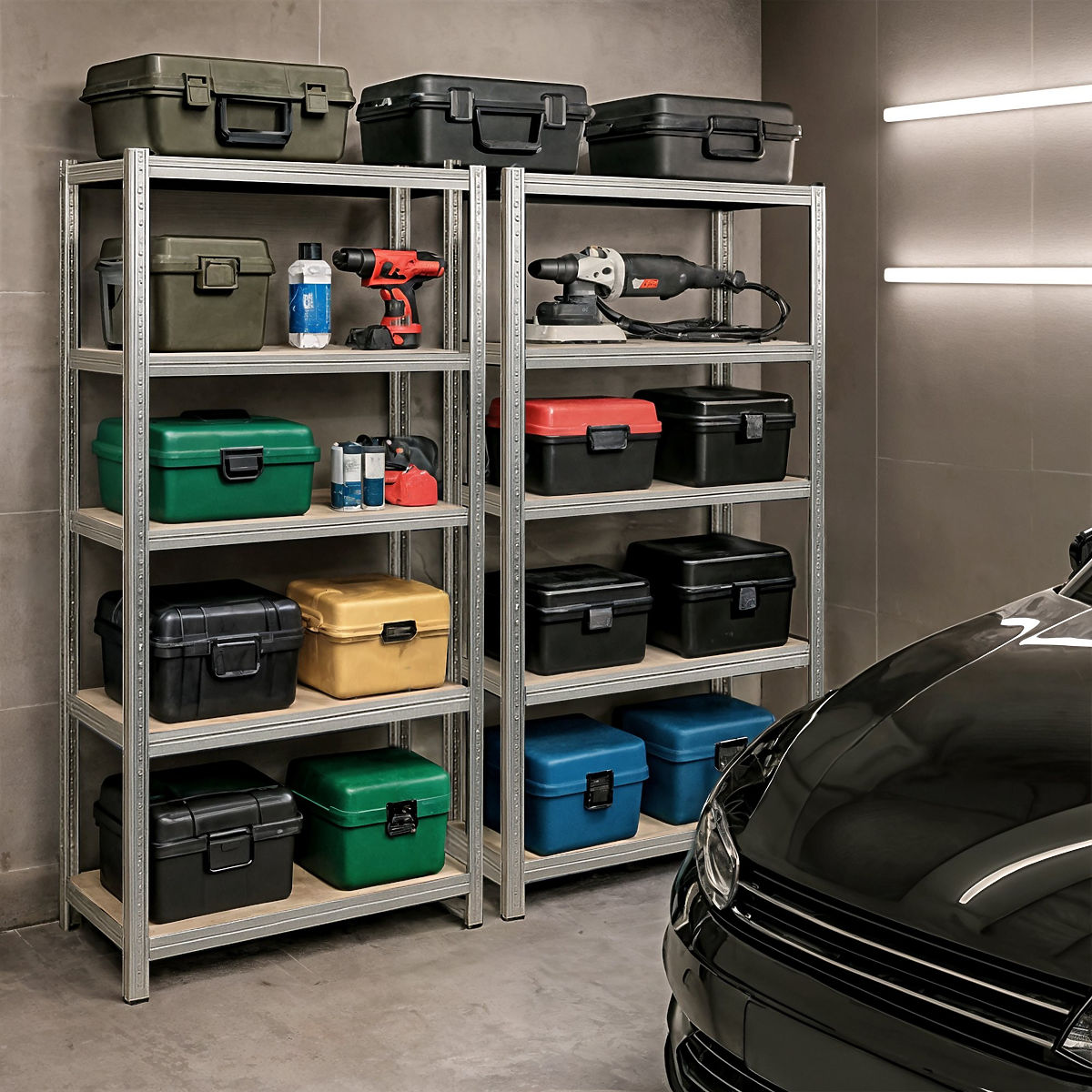 Kovový regál s 5 policemi pro skladování v garáži a dílně. .. více