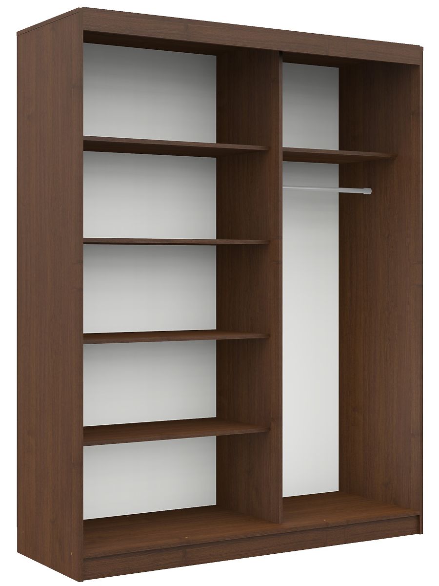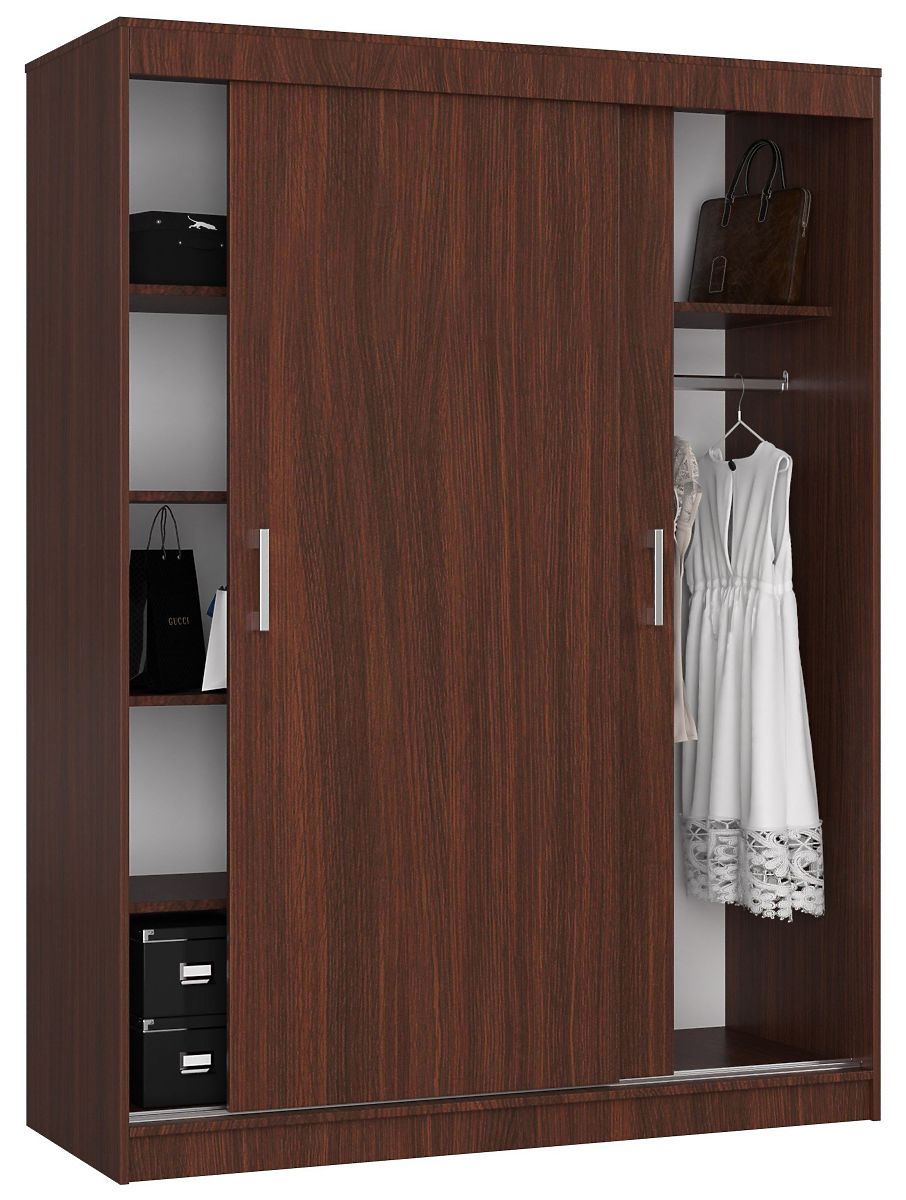 Posuvná skříň 150 cm CLP v barvě mono wenge je ideální volbou pro milovníky klasiky. Nábytek je elegantní a jednoduchý ve formě, ideálně se hodí do ložnice, obývacího pokoje nebo šatny. Skvěle zapadne do aranžmá kladoucích důraz na eleganci. Nábytek je funkční a odolný, zároveň usnadní udržování pořádku v oblečení a textiliích. Je určen pro 2 osoby.