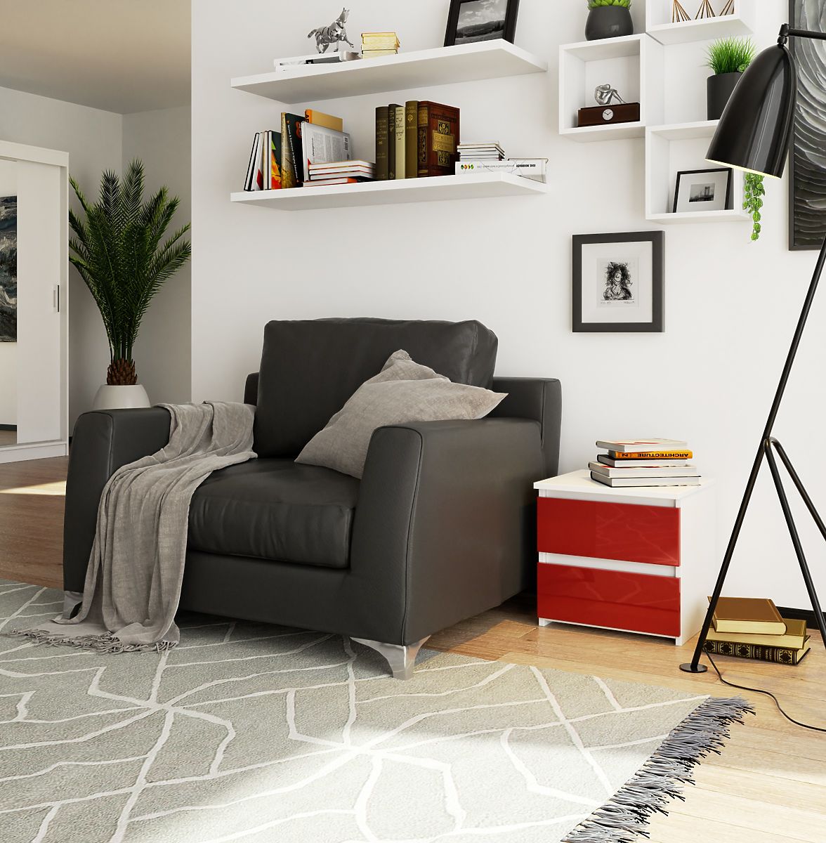 V nabídce našeho obchodu najdete módní a kvalitní noční stolek, jehož design a kvalita vás ohromí. Skříňka je vyrobena z laminované desky, která je odolná proti oděru. Díky tomu máte záruku, že tento krásný nábytek vám bude sloužit po léta, aniž by ztratil na estetických hodnotách. Stojí za to dodat, že také čela byla vyrobena z desky červený lesk. Kromě toho se zásuvky v této skříňce pohybují na kovových kolečkových vodítkách. Aby byla zajištěna ještě větší ochrana, jsou hrany a čela skříňky olepeny ABS hranou, která má za cíl zajistit nábytku vysokou ochranu před všemi mechanickými poškozeními.