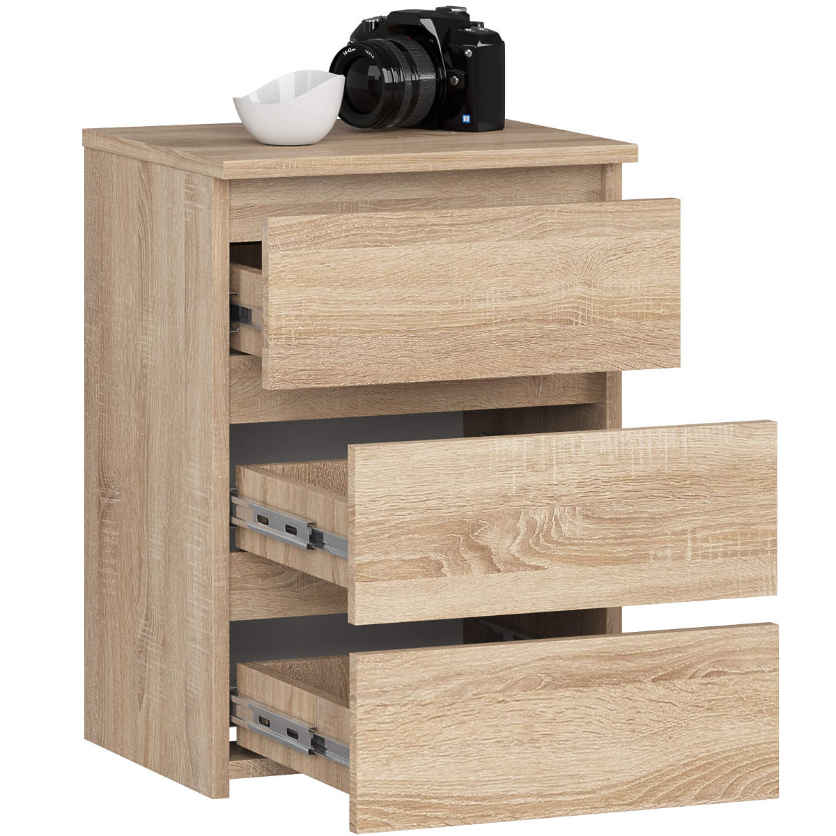 Noční stolky jsou populárním typem nábytku, který se umisťuje vedle postele. Na jeho desce se nejčastěji nachází lampička, zatímco uvnitř jsou předměty usnadňující odpočinek a spánek. Osoby, které hledají elegantní komodu, by měly věnovat pozornost nočnímu stolku CL3 40 cm v barvě dub sonoma. Bude se krásně vyjímat v každé ložnici. Můžete ji umístit také do dětského pokoje.