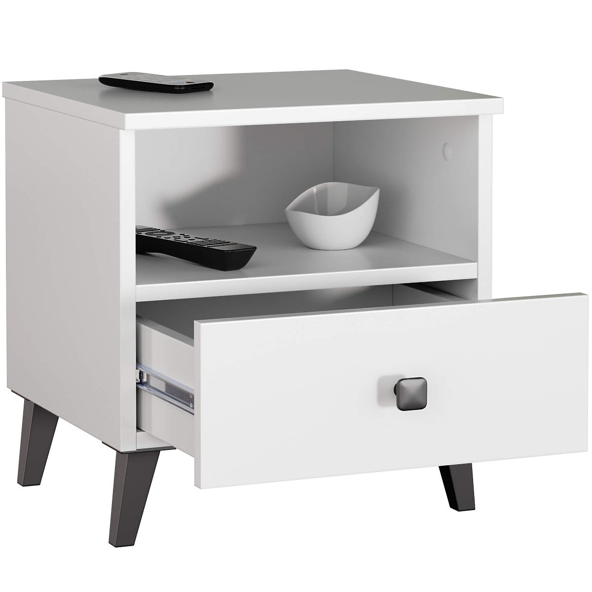 Bílý noční stolek MOBI K01 s jednou zásuvkou a nikou. .. více