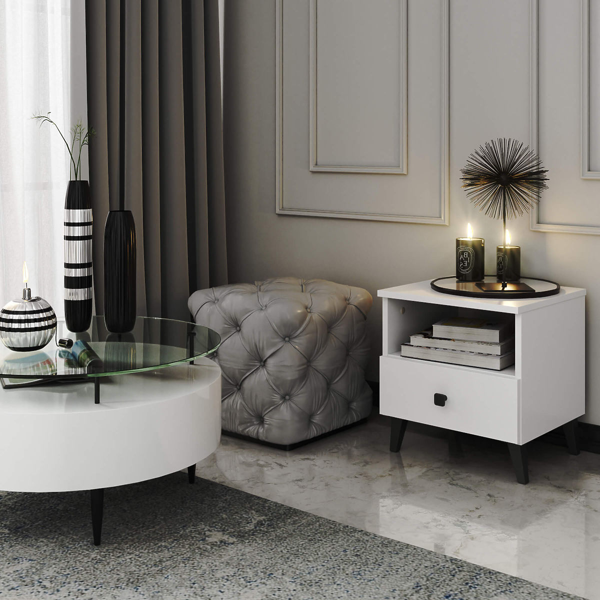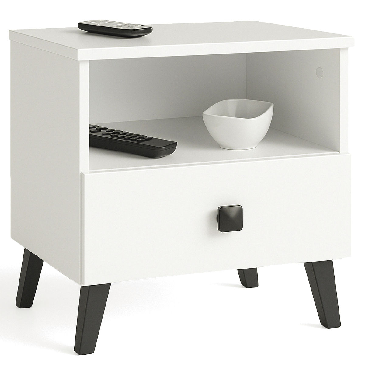 NOČNÍ STOLEK MOBI 1 ZÁSUVKA 1 NIKA BÍLÁ ČERNÁ