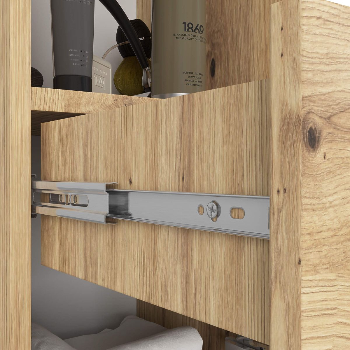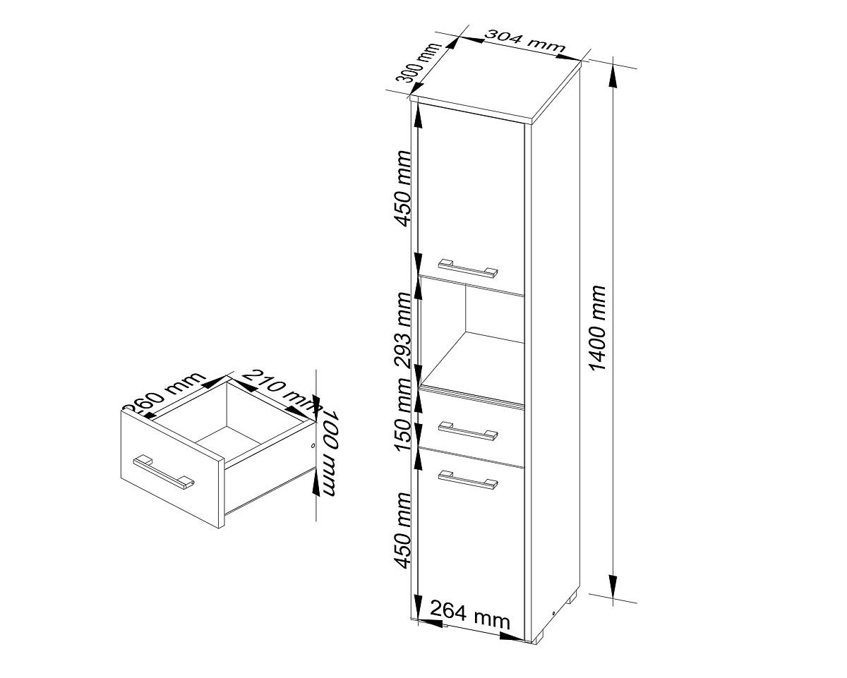 Co charakterizuje náš koupelnový sloupek FIN 2D? Především neobvyklý moderní design. Dokonale se hodí k modernímu vzhledu dnešních koupelen a na rozdíl od běžných skříněk není v bílé barvě. To dodává obvykle chladné místnosti trochu tepla. Vyroben z desky odolné nejen proti poškrábání a oděru, ale také proti vlhkosti, která ničí většinu běžných skříněk, je tento sloupek jednou z lepších investic. Výška 140 cm umožňuje uschovat potřebné věci a poskytuje další místo pro umístění těch, které používáme nejčastěji. Hloubka a délka sloupku 30 cm nezabírá příliš místa a je obzvláště vhodná pro malé prostory, zatímco dvě nezávisle uzavíratelné police pojmou velké množství věcí, včetně ručníků. Další zásuvka umožňuje skrýt drobné předměty z dohledu. Koupelnový sloupek v barvě dub artisan je umístěn na elegantních nožkách, které zajišťují jeho stabilitu.