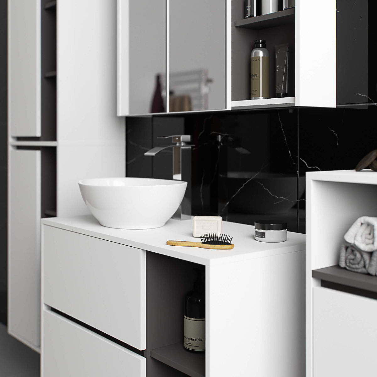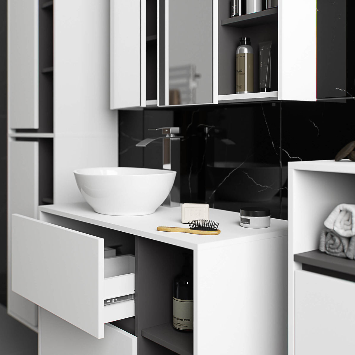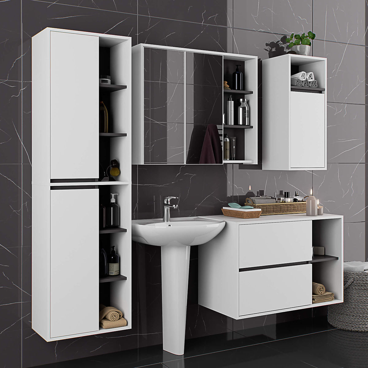 Szafki łazienkowe świetnie uzupełniają wyposażenie łazienki, zapewniając niezbędne miejsce na wszelkie kosmetyki i detergenty oraz nadając łazience określony styl. Pojemne szafki ułatwiają zachowanie porządku w pomieszczeniu, co korzystnie wpływa na estetykę wnętrza. Kolekcja VAMI wyróżnia się przykuwającą uwagę stylową kolorystyką – korpus oraz fronty mają taką samą barwę, natomiast kolor wewnętrzny jest inny.