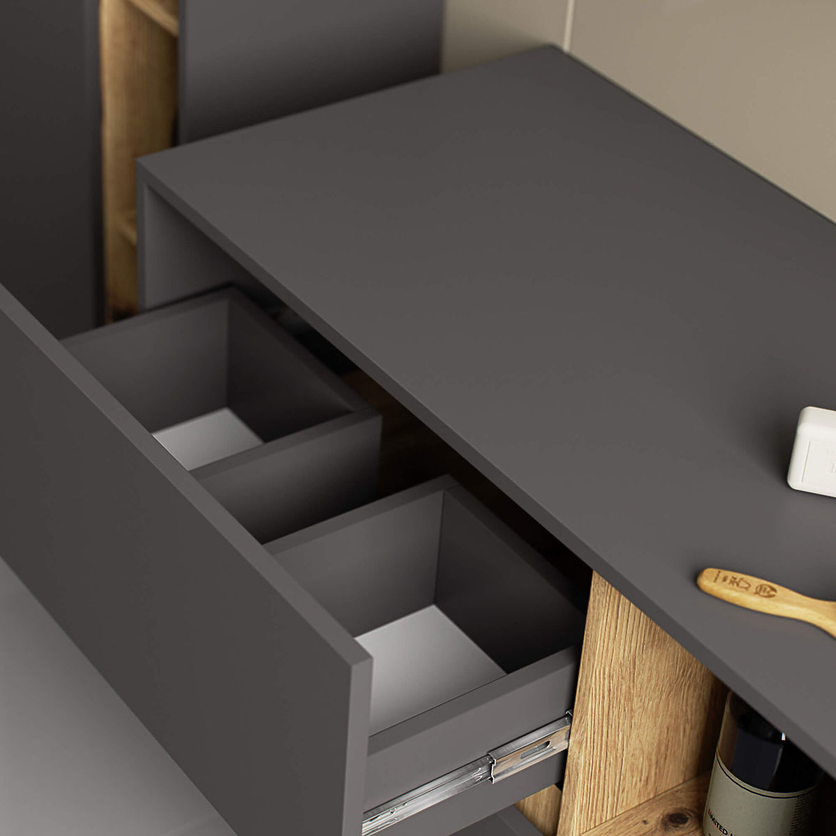 Lukafurniture.cz » Koupelna a WC / Koupelnové skříňky / SZAFKA ŁAZIENKOWA POD UMYWALKĘ VAMI W 90 cm 2 SZUFLADY GRAFIT SZARY / DĄB ARTISAN