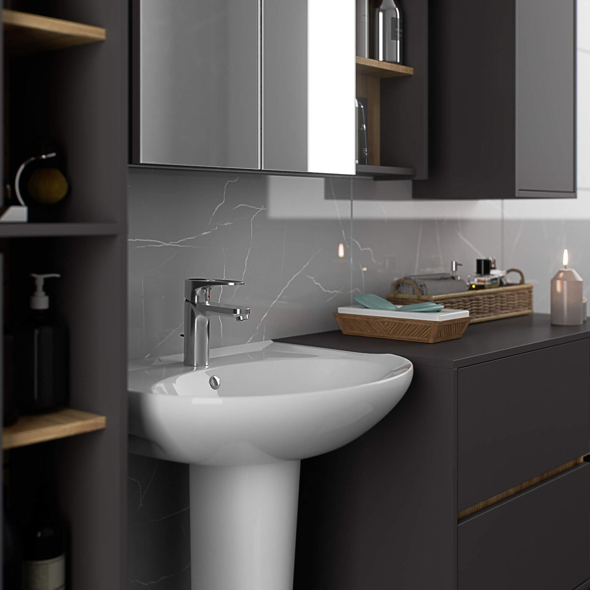 Szafki łazienkowe świetnie uzupełniają wyposażenie łazienki, zapewniając niezbędne miejsce na wszelkie kosmetyki i detergenty oraz nadając łazience określony styl. Pojemne szafki ułatwiają zachowanie porządku w pomieszczeniu, co korzystnie wpływa na estetykę wnętrza. Kolekcja VAMI wyróżnia się przykuwającą uwagę stylową kolorystyką – korpus oraz fronty mają taką samą barwę, natomiast kolor wewnętrzny jest inny.