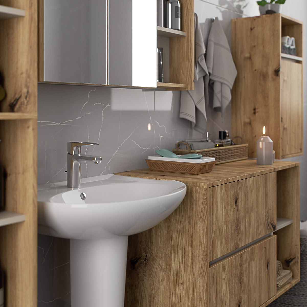 Lukafurniture.cz » Koupelna a WC / Koupelnové sestavy / SADA ZÁVĚSNÉHO KOUPELNOVÉHO NÁBYTKU VAMI DUB ARTISAN / KAŠMÍR