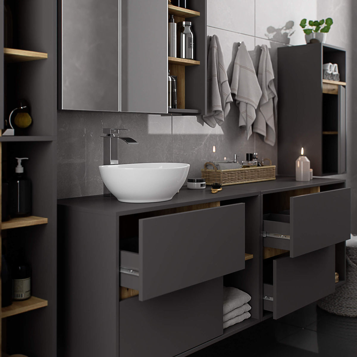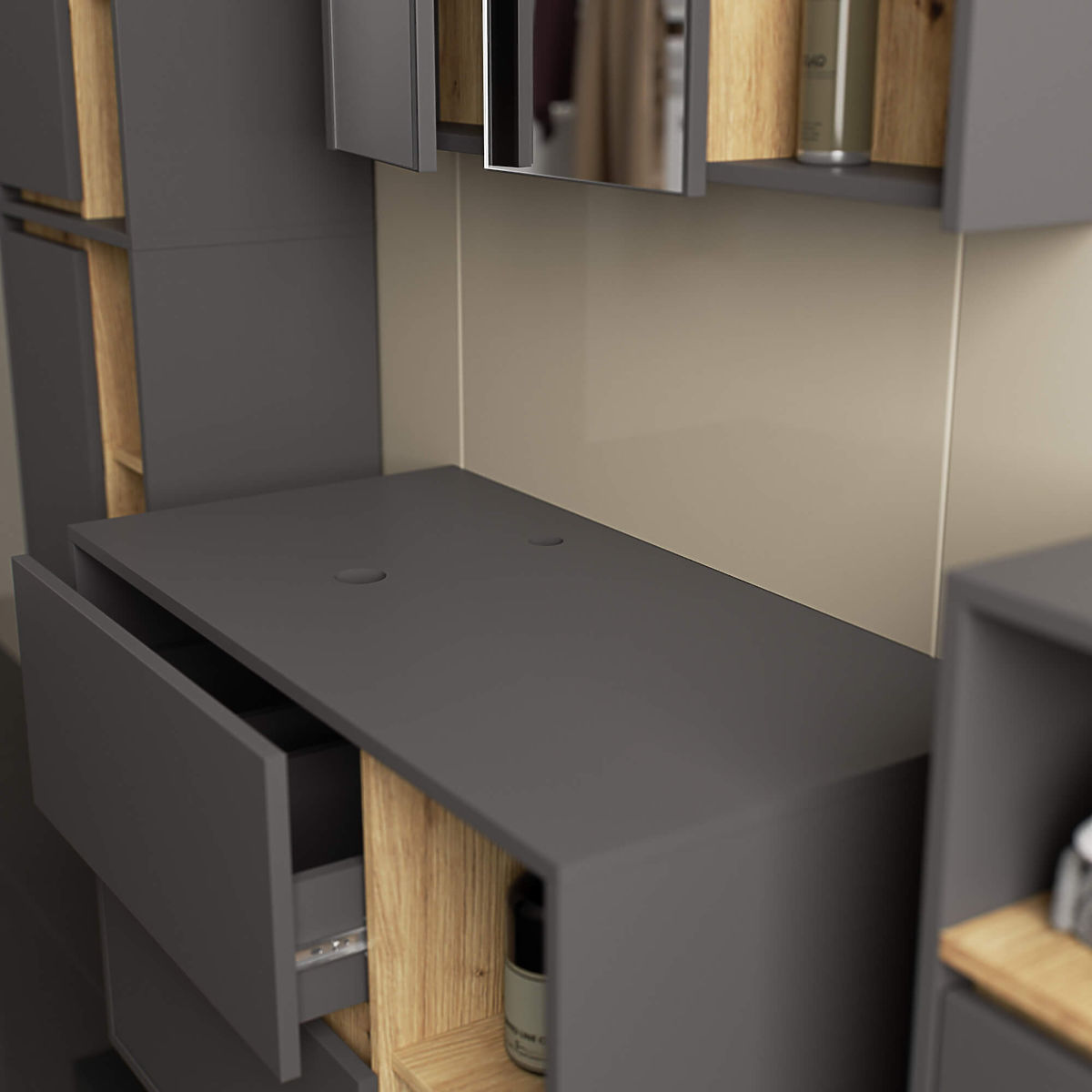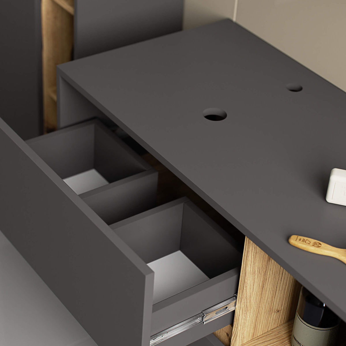 Lukafurniture.cz » Koupelna a WC / Koupelnové skříňky / KOUPELNOVÁ SKŘÍŇKA POD UMYVADLO S OTVORY VAMI W90 UM 2SZ 2P GRAFIT ŠEDÁ / DUB ARTISAN