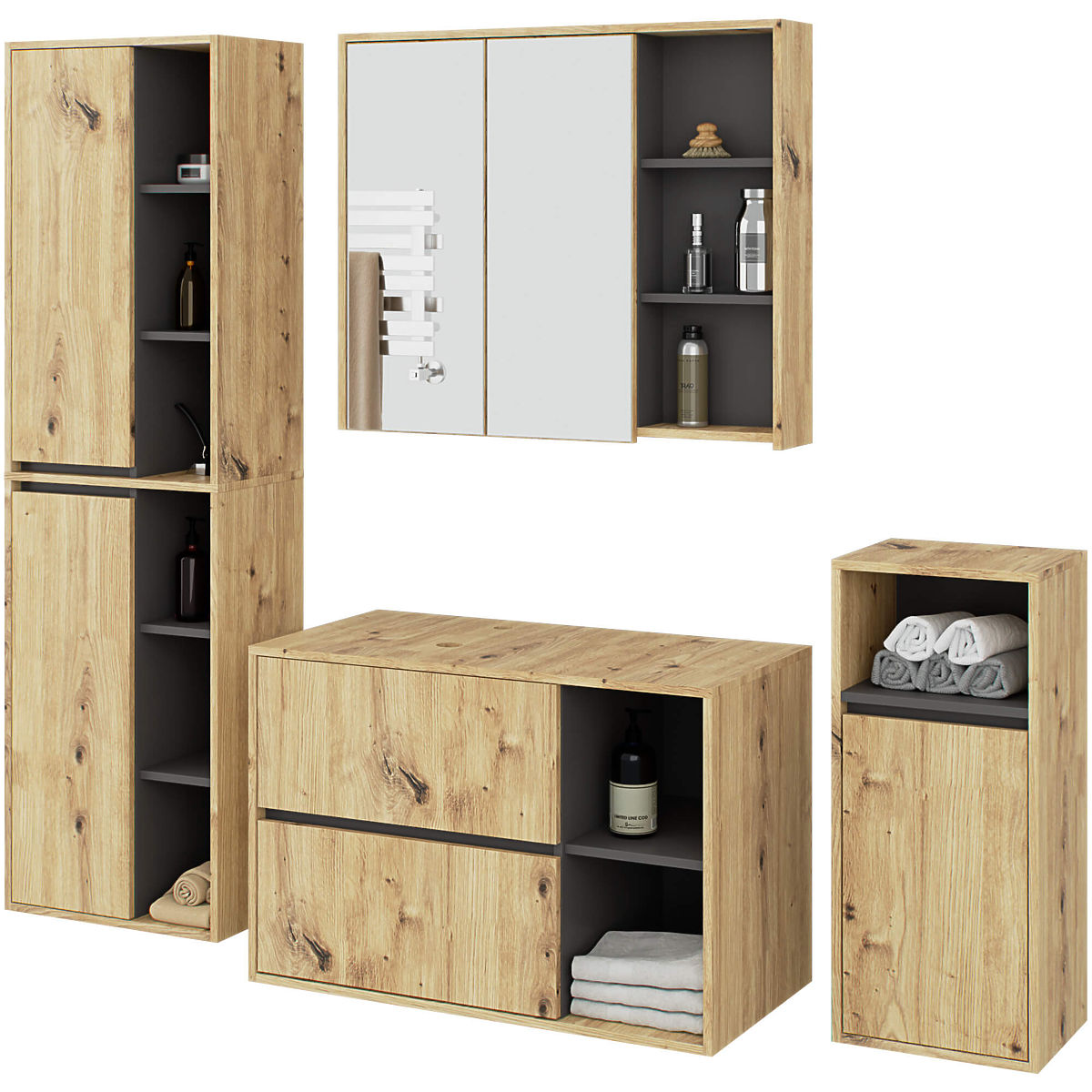 Lukafurniture.cz » Koupelna a WC / Koupelnové sestavy / SADA ZÁVĚSNÉHO KOUPELNOVÉHO NÁBYTKU S OTVORY VAMI DUB ARTISAN / GRAFIT ŠEDÝ