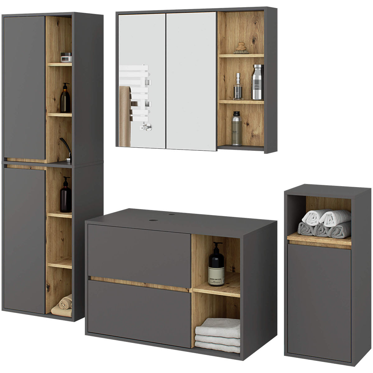 Lukafurniture.cz » Koupelna a WC / Koupelnové sestavy / SADA ZÁVĚSNÉHO KOUPELNOVÉHO NÁBYTKU S OTVORY VAMI GRAFIT ŠEDÁ / DUB ARTISAN