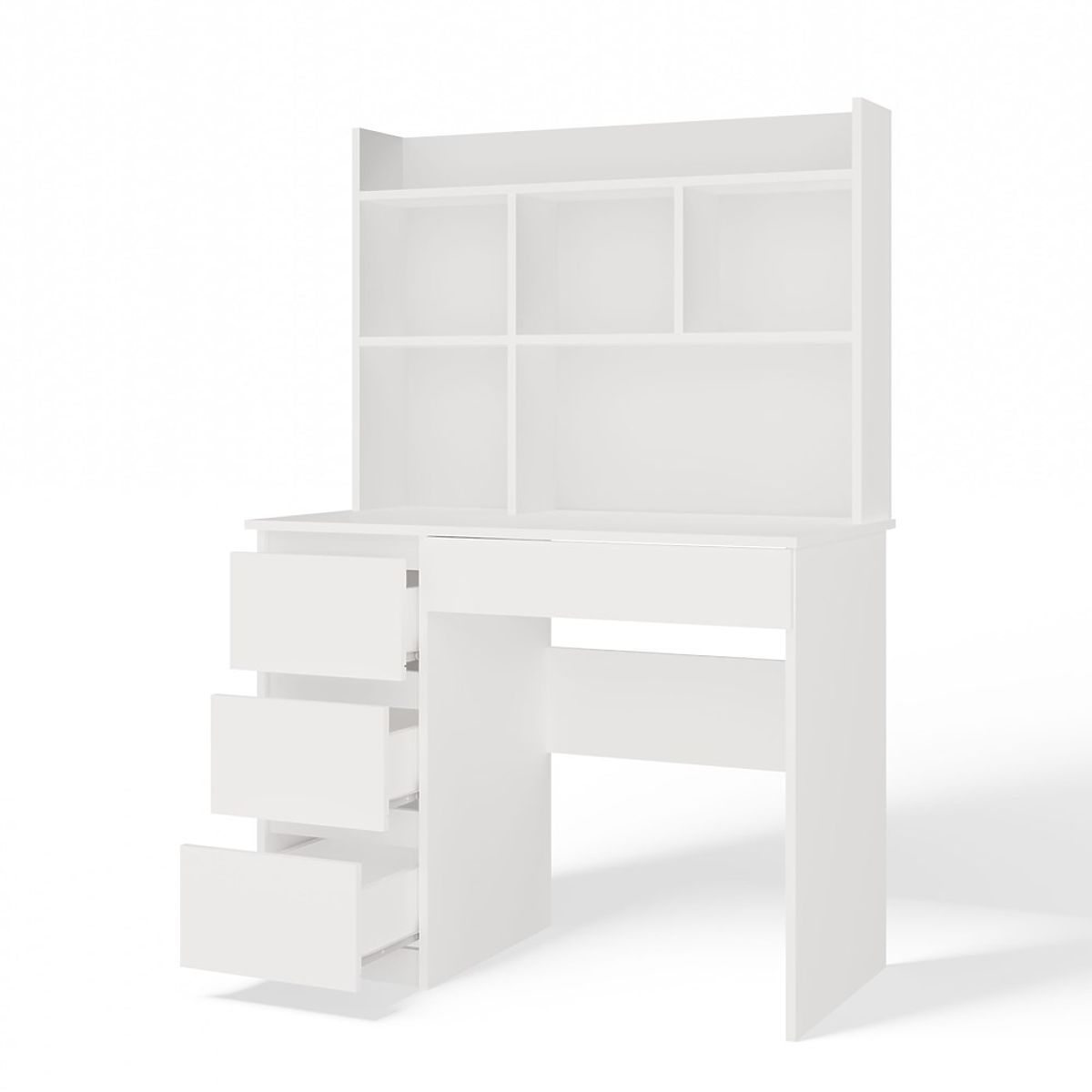 Biurko MIJAS Lewe Z Nadstawką Biel Mat 4 Szuflady 4 Półki Do Biura Pokoju